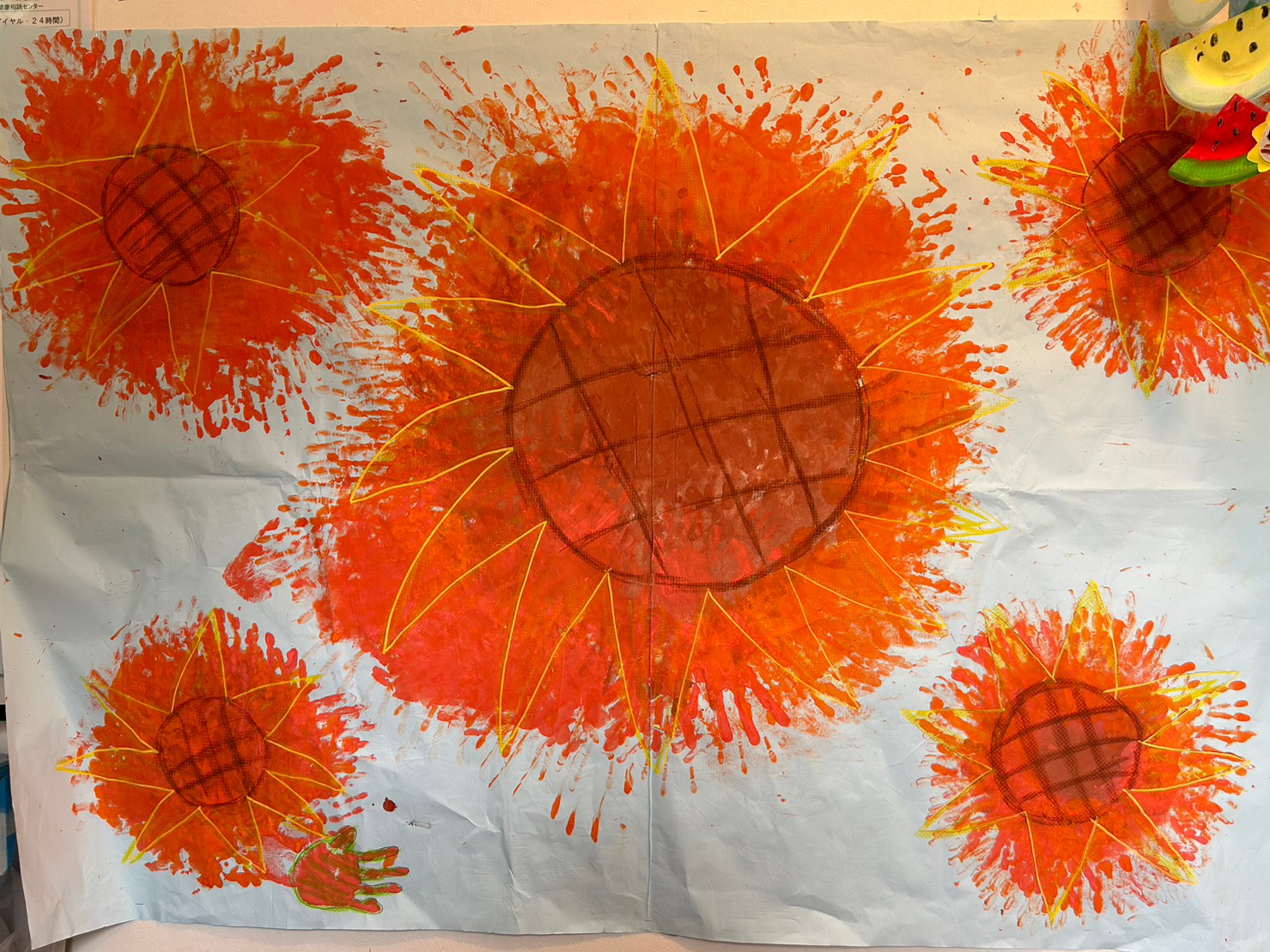 今月の壁面は子供達の手のひらで満開にドーン!!と咲き誇る向日葵\(ϋ)/♩