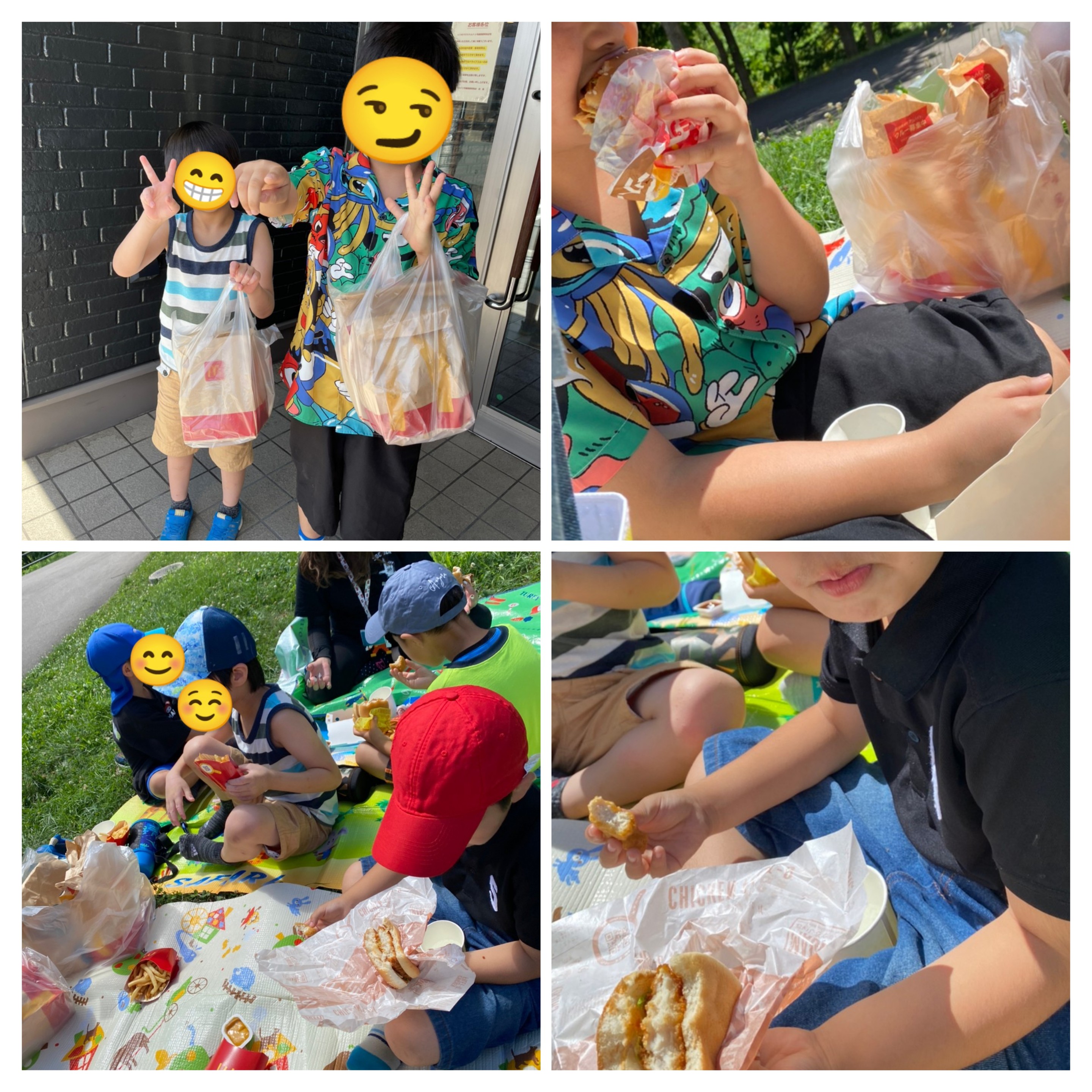 快晴に恵まれ太陽のした、みんなでピクニック気分でランチタイム(≧▽≦)