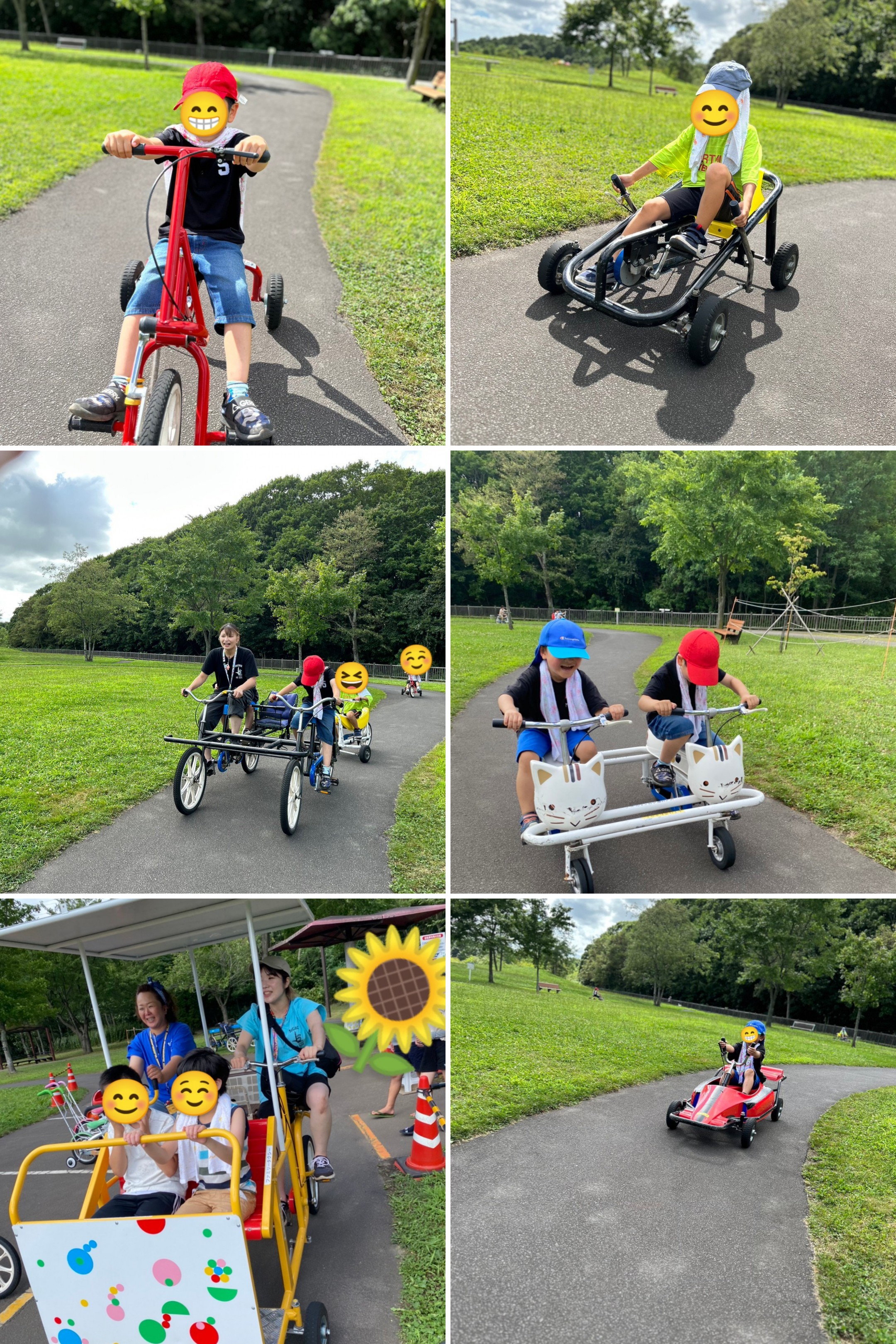 自転車苦手な子は四人乗り自転車で職員と共にコースを周りました(◍•ᴗ•◍)