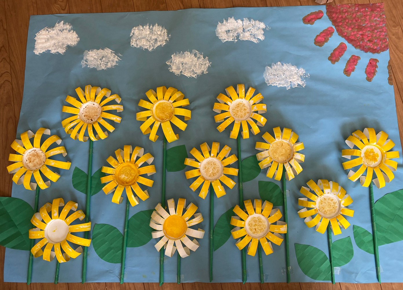 先週制作した大輪のヒマワリを描いた紙コップで