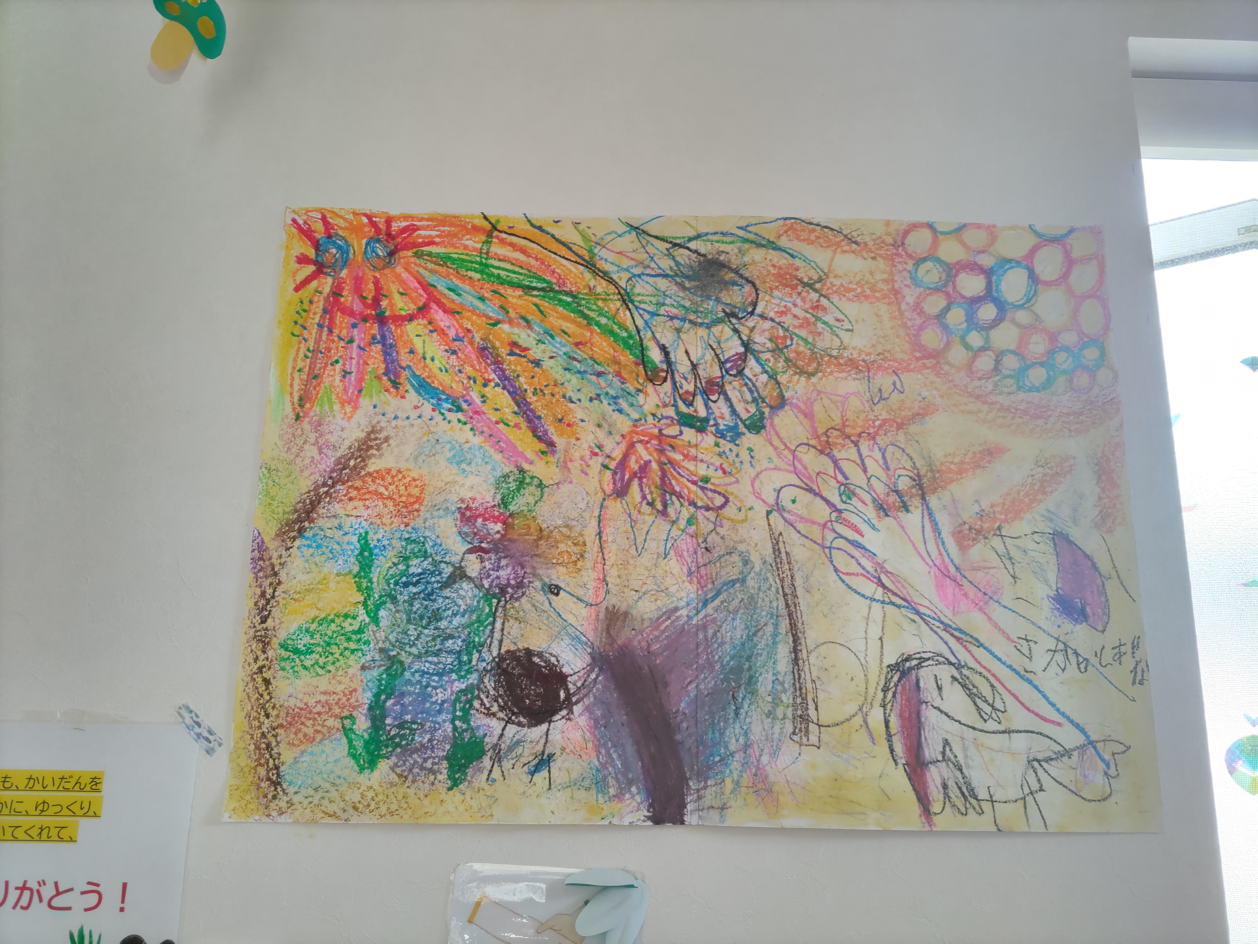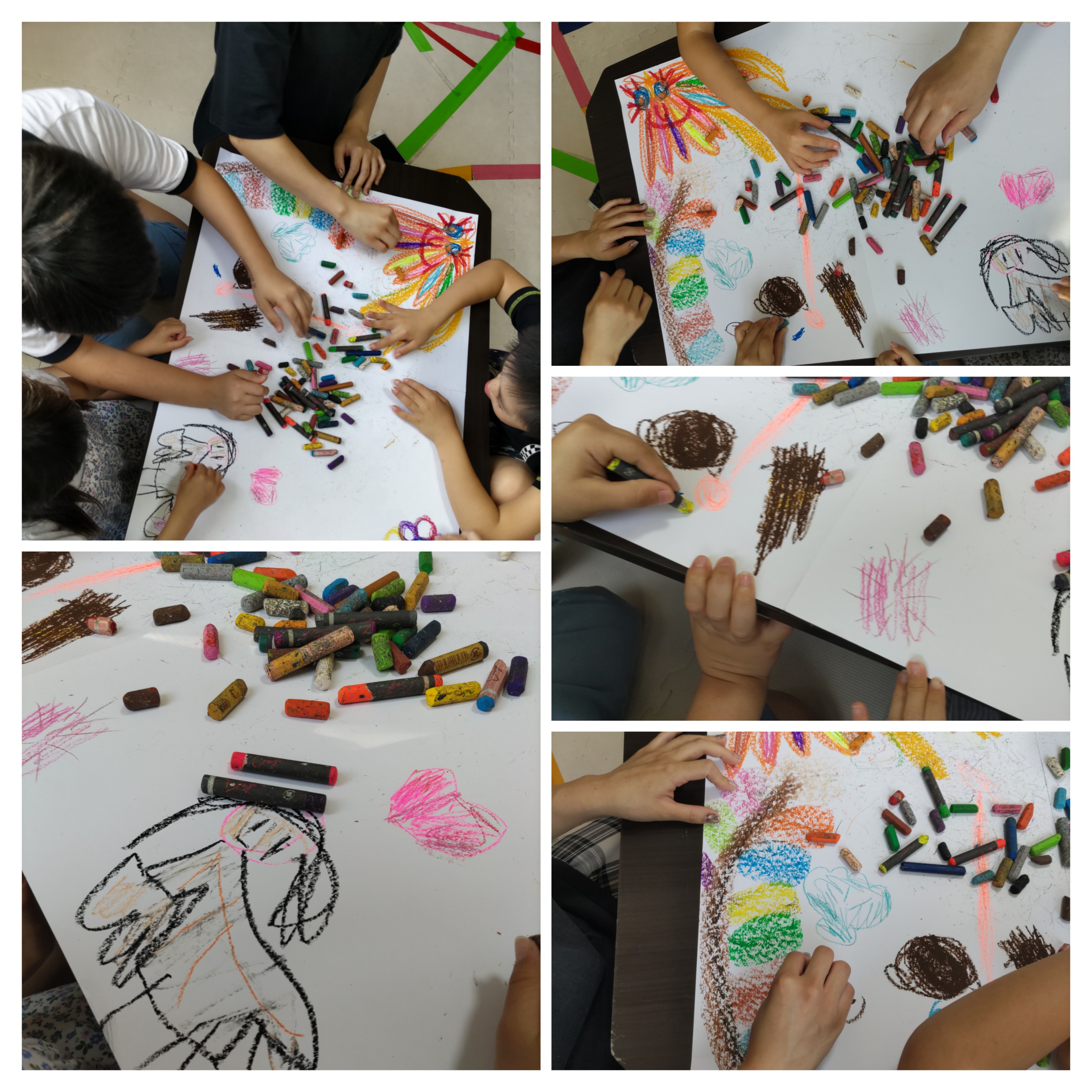 クレヨンで思いのまま、感じるまま、1枚の大きな画用紙を広げみんなで一つのオリジナル絵画を楽しみました\(๑╹◡╹๑)ノ♬