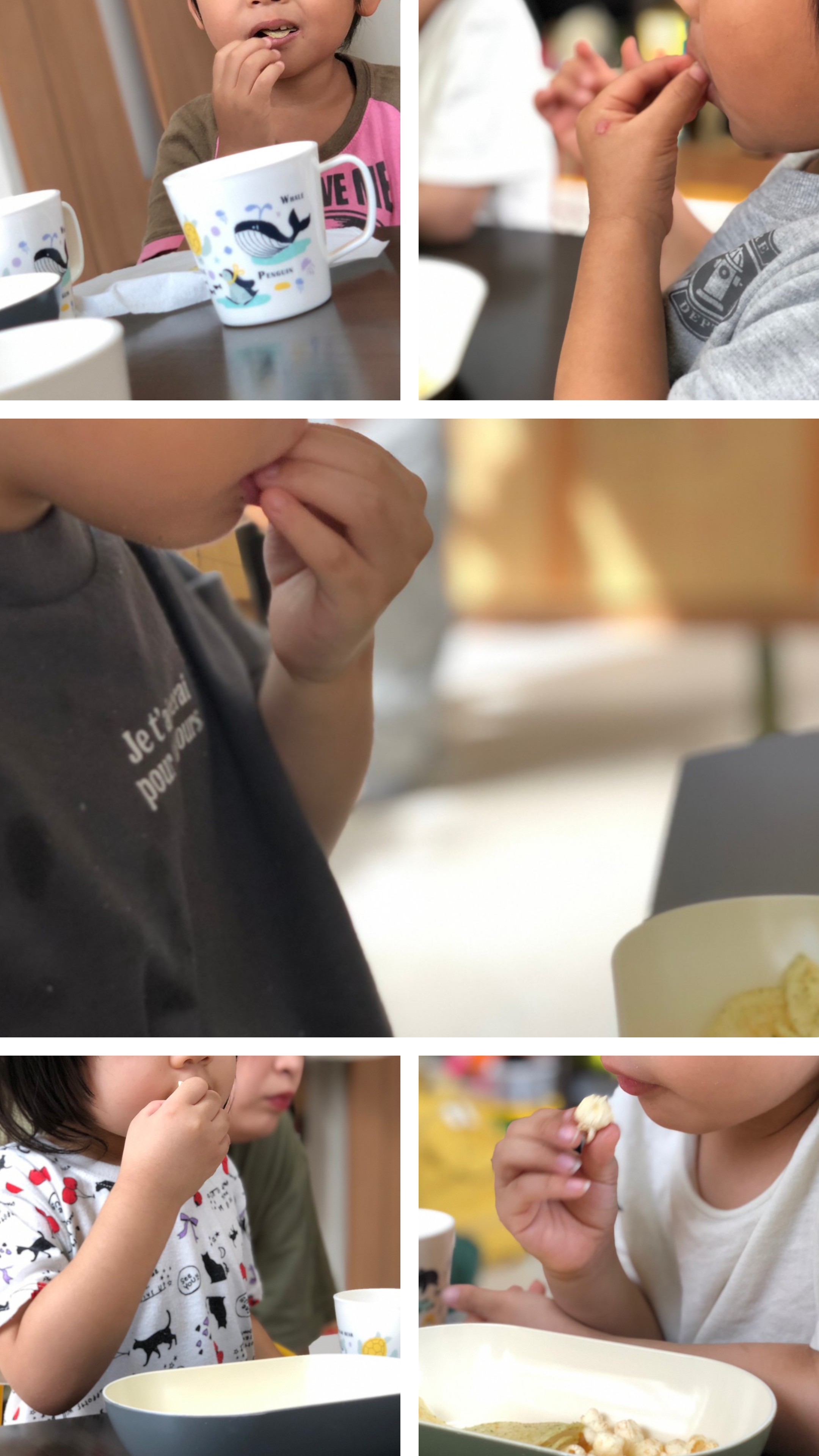 思いっきり外遊びした後は、ゆっくりみんなでおやつタイム(。・ω・。)ノ♡