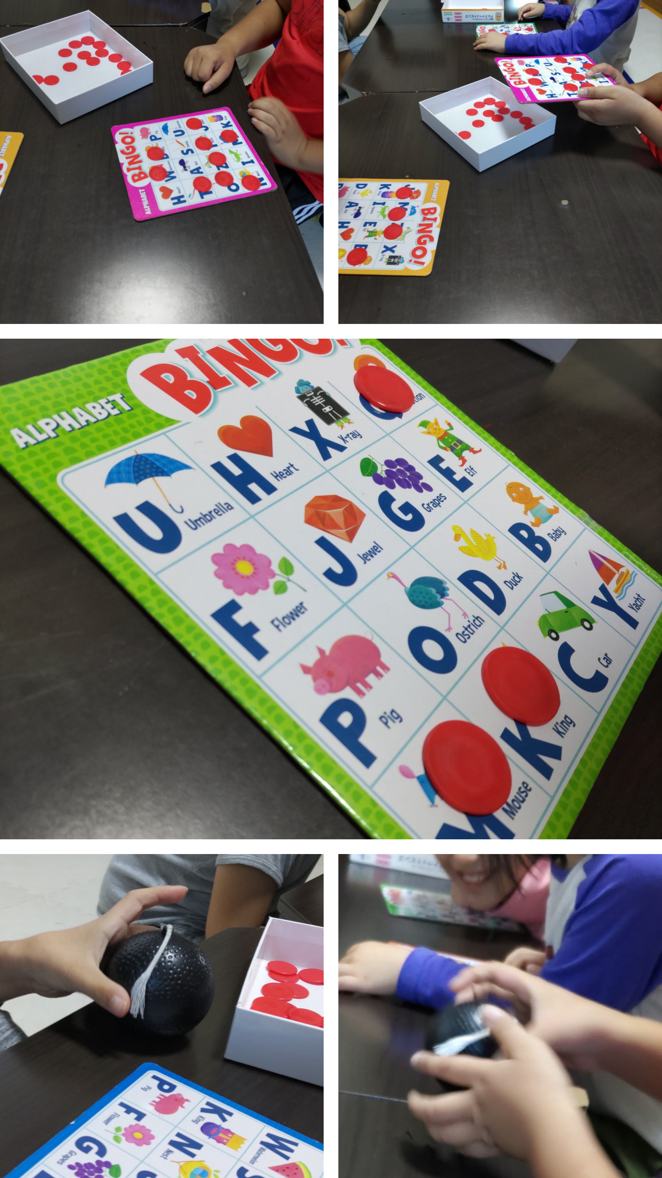 ビンゴカードに記入されてる英単語を一つ言ったら隣のお友達に渡しタイマーが切れて「ボァァァーン!」と鳴ったら当たり!!