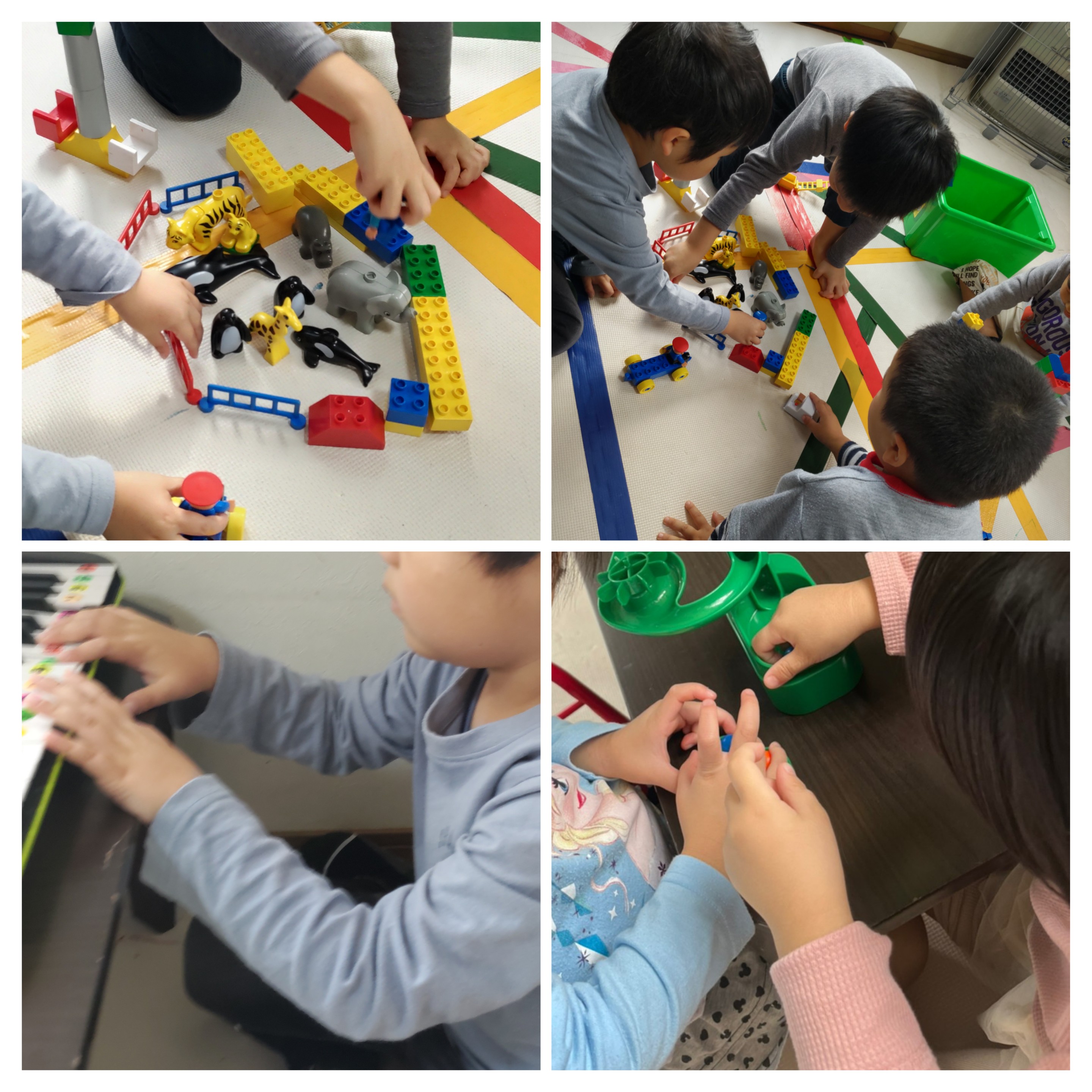 ミニキーボードや、くみくみスロープ、ブロック、お絵描きなど楽しむ姿が沢山\(ϋ)/♩