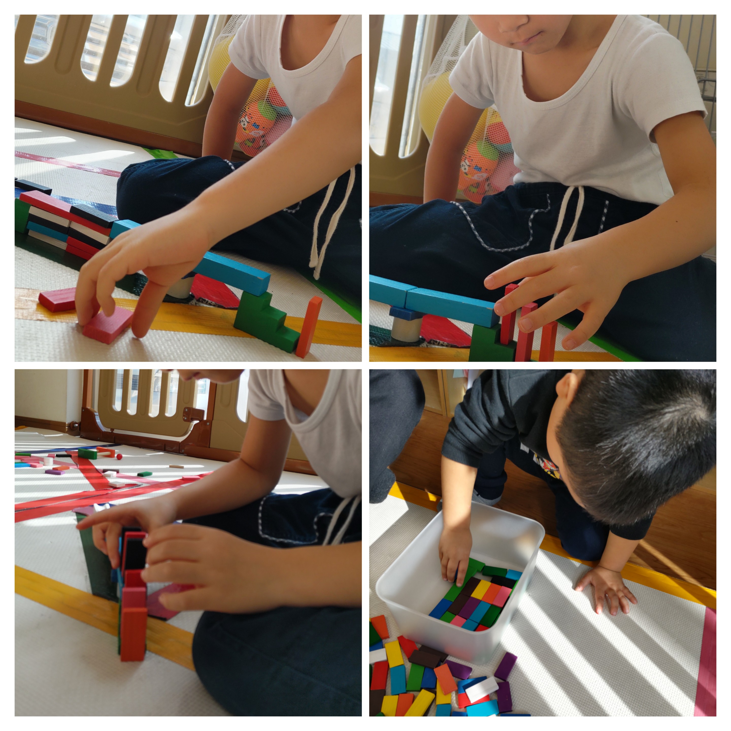 積み木でレールを作り、その上でドミノチャレンジ!!