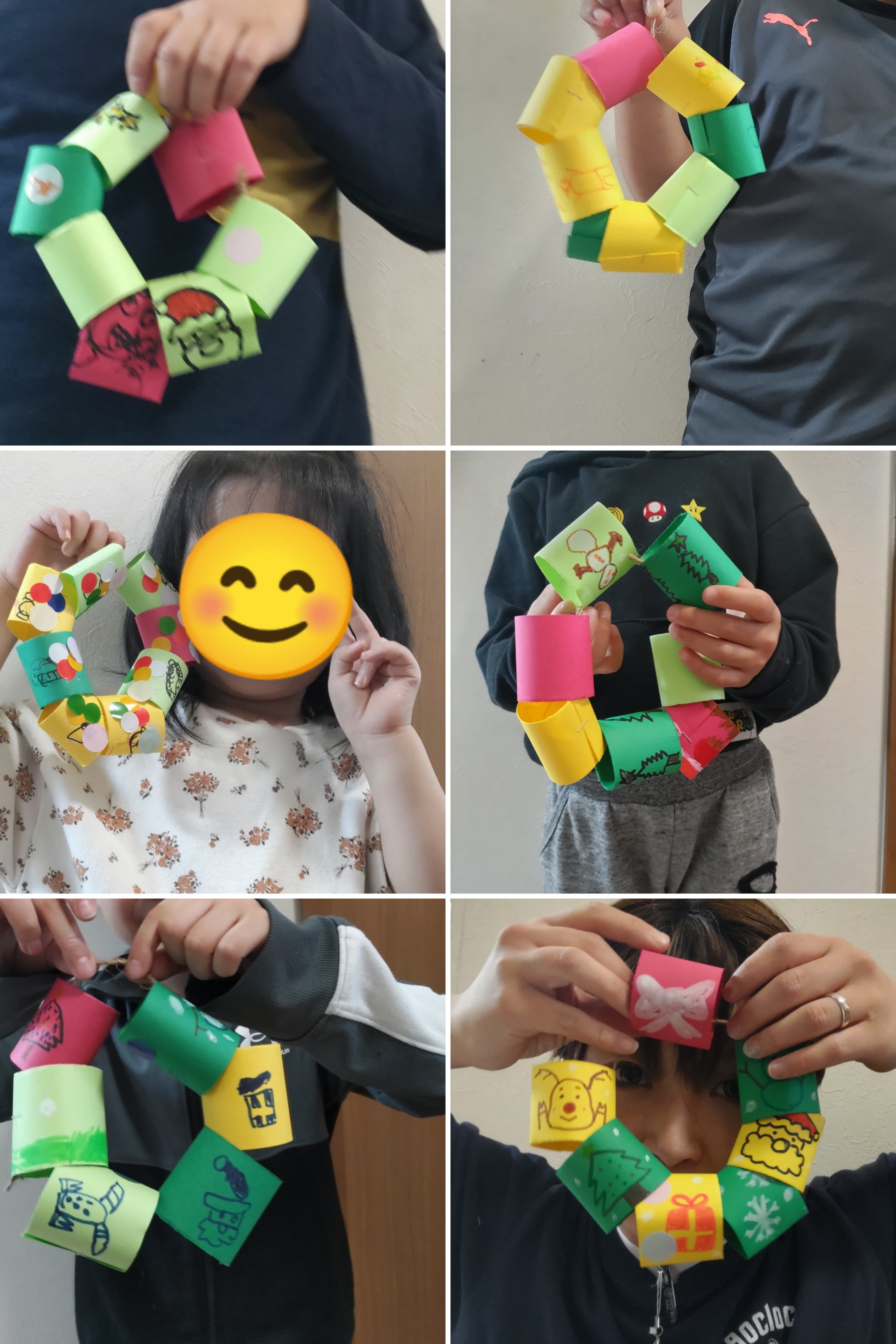 シールを貼ったり、絵を描いたり、一人一人のクリスマスがリースの中に表現されました\(๑╹◡╹๑)ノ♬
