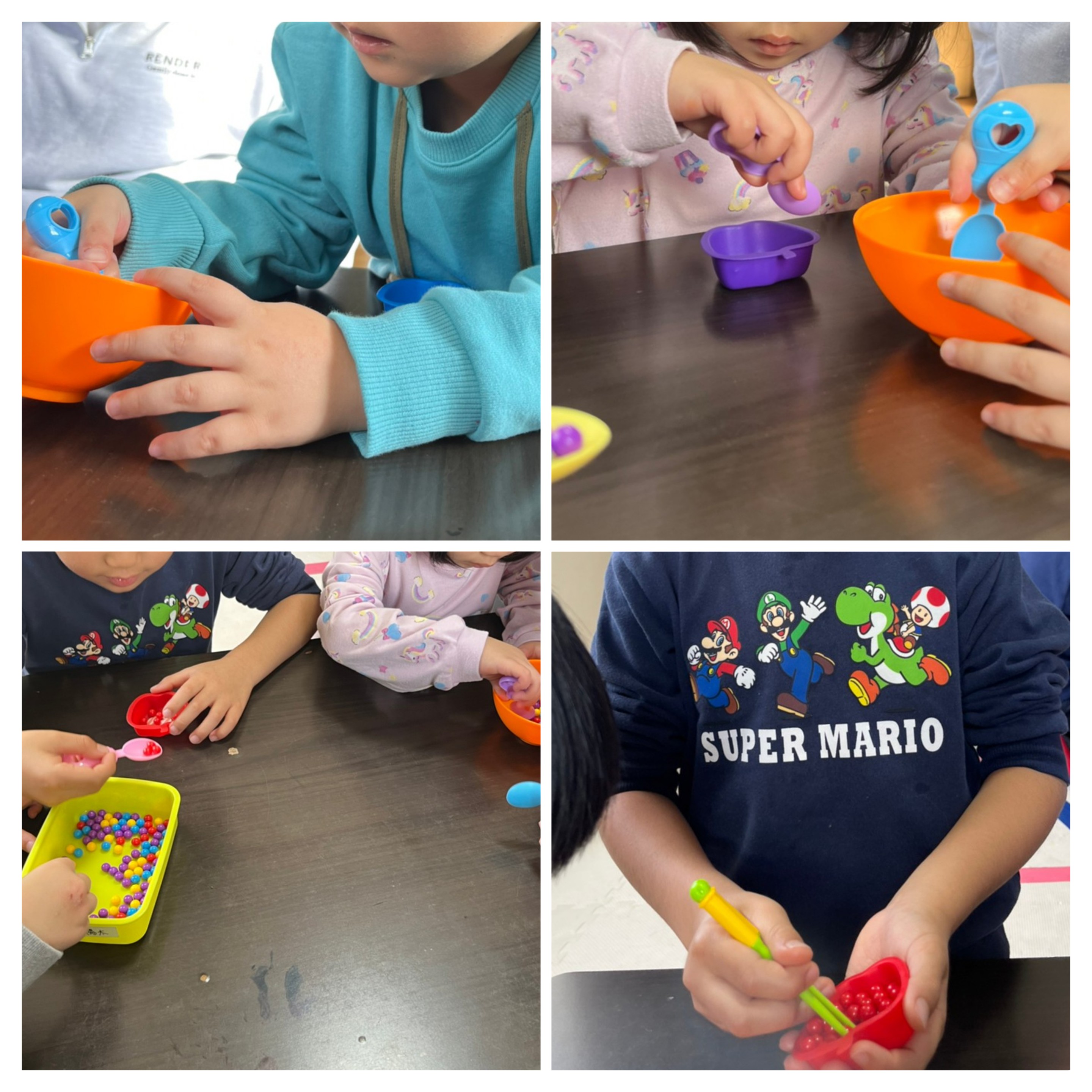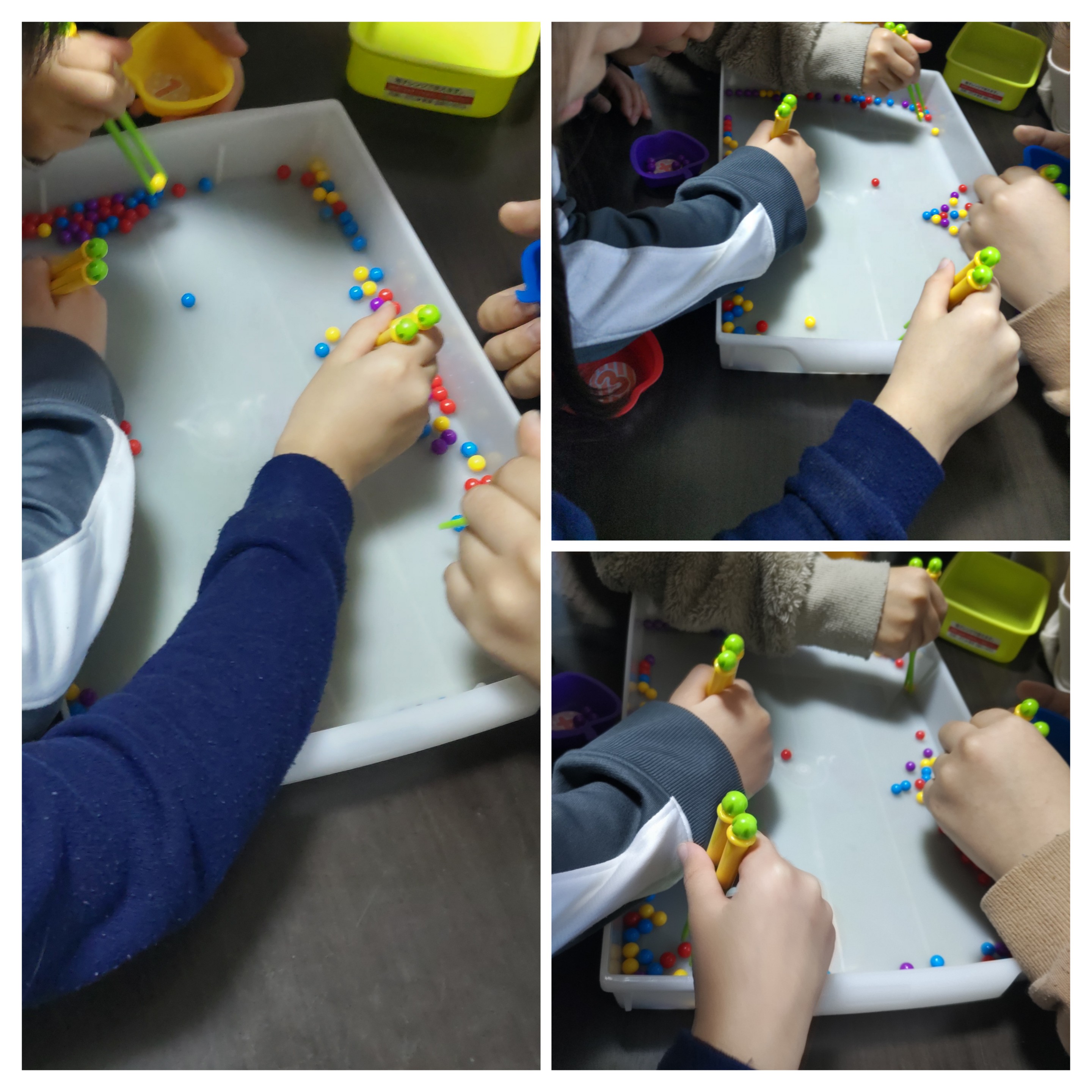 チーム対抗箸を使ってミニビーズ拾いに挑戦ᕙ(@°▽°@)ᕗ