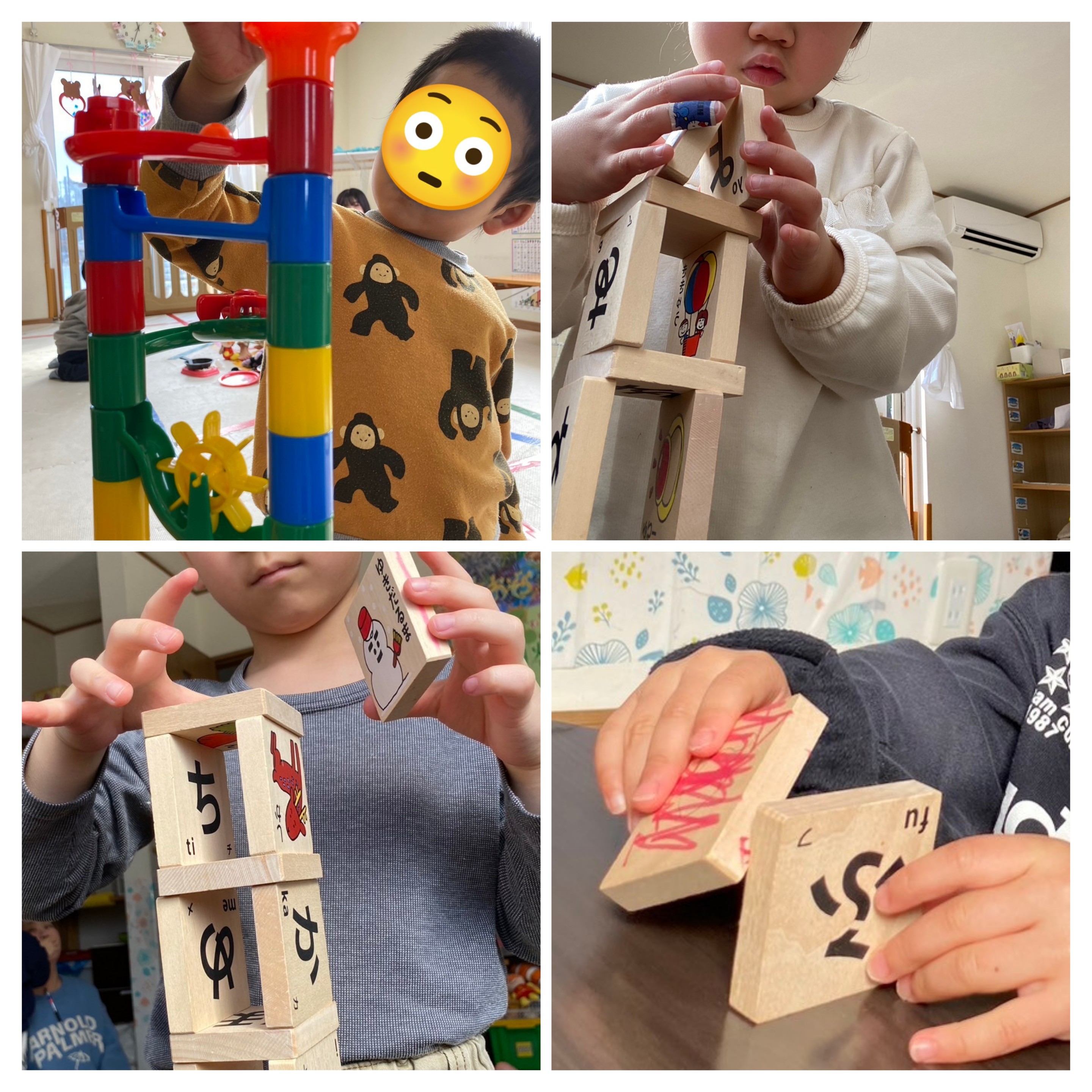 今週は積み木や、くみくみスロープも高く高く積み上げる事に挑戦する子が!!