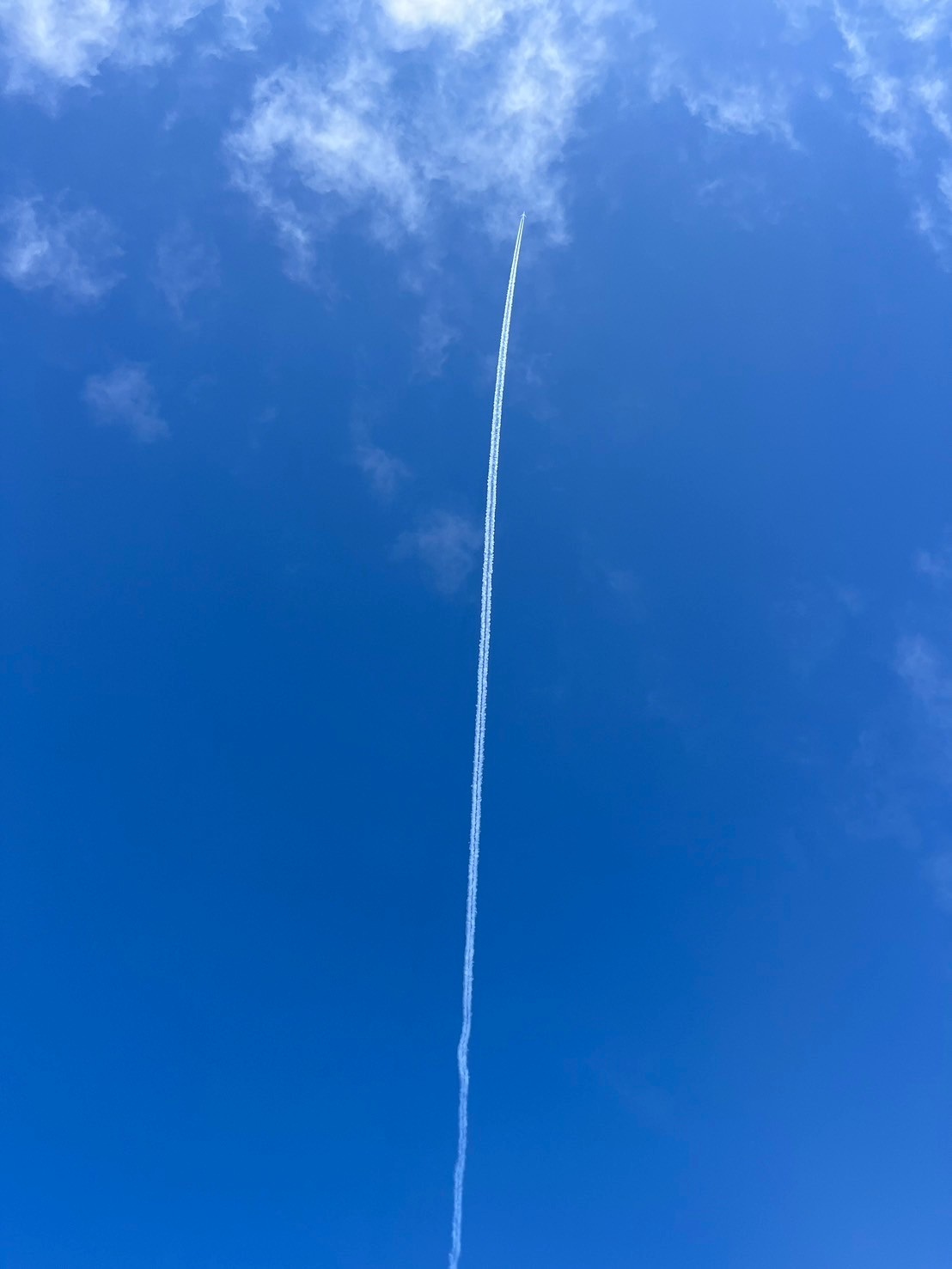 見上げた青空に真っ直ぐ真っ直ぐ伸びる飛行機雲。