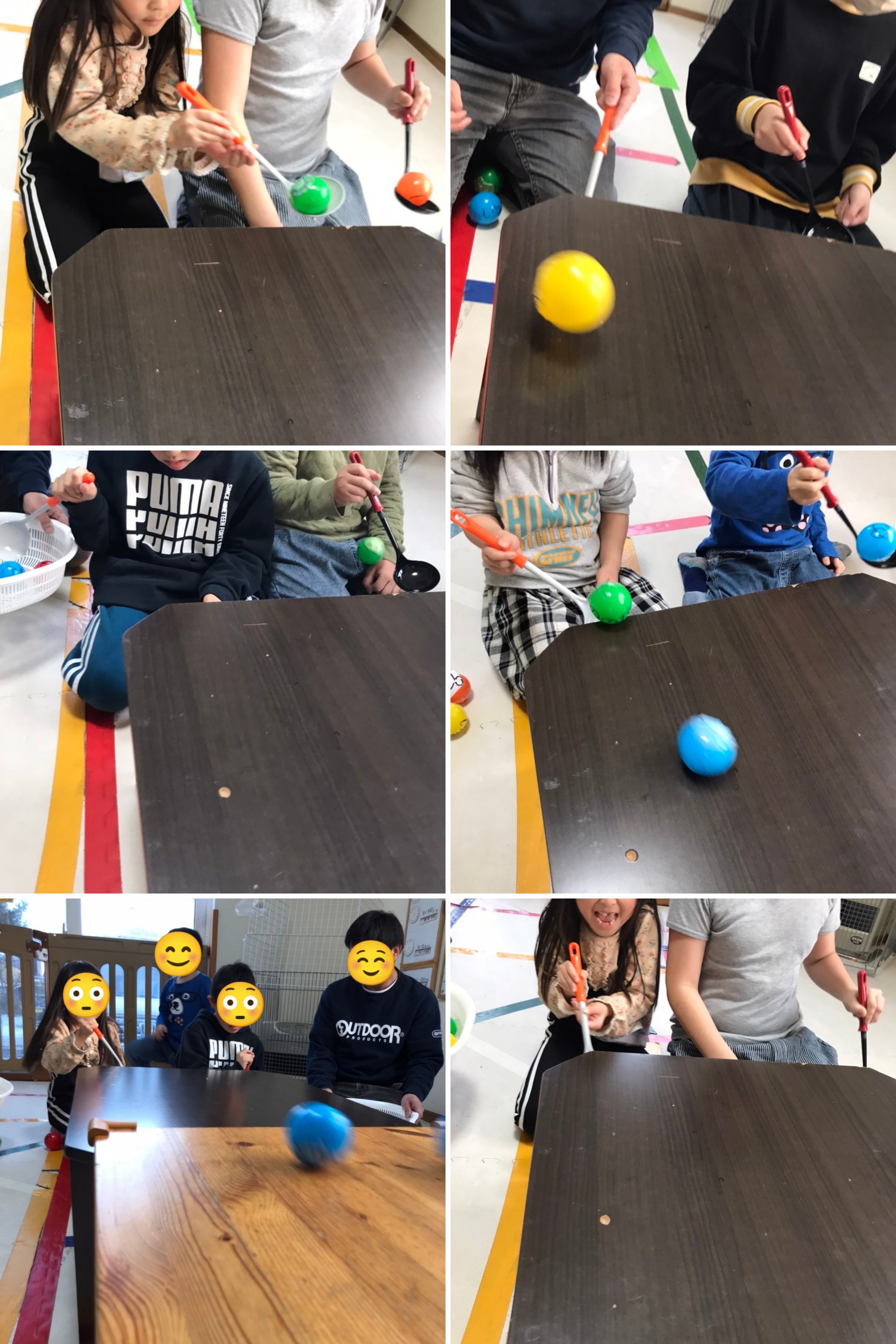 今月も大盛り上がりレク「おたまでキャッチ!!」