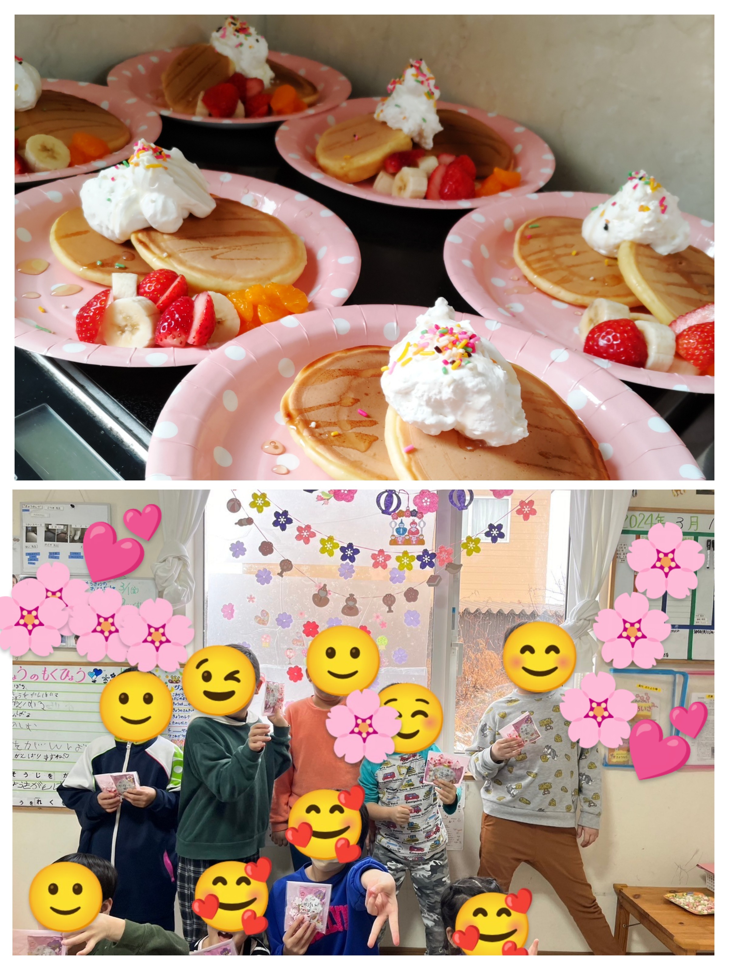 放デイさんのひなまつりパーティーは女の子達のリクエスト!!ホットケーキ(◍•ᴗ•◍)❤&金平糖。