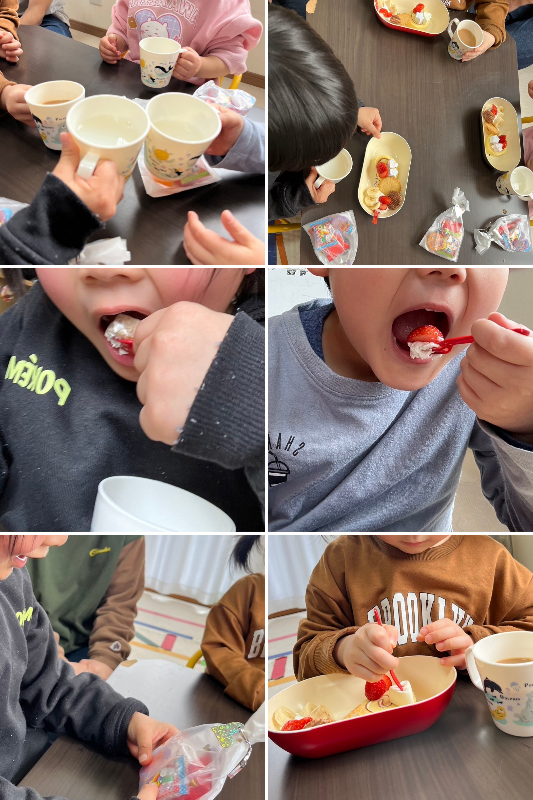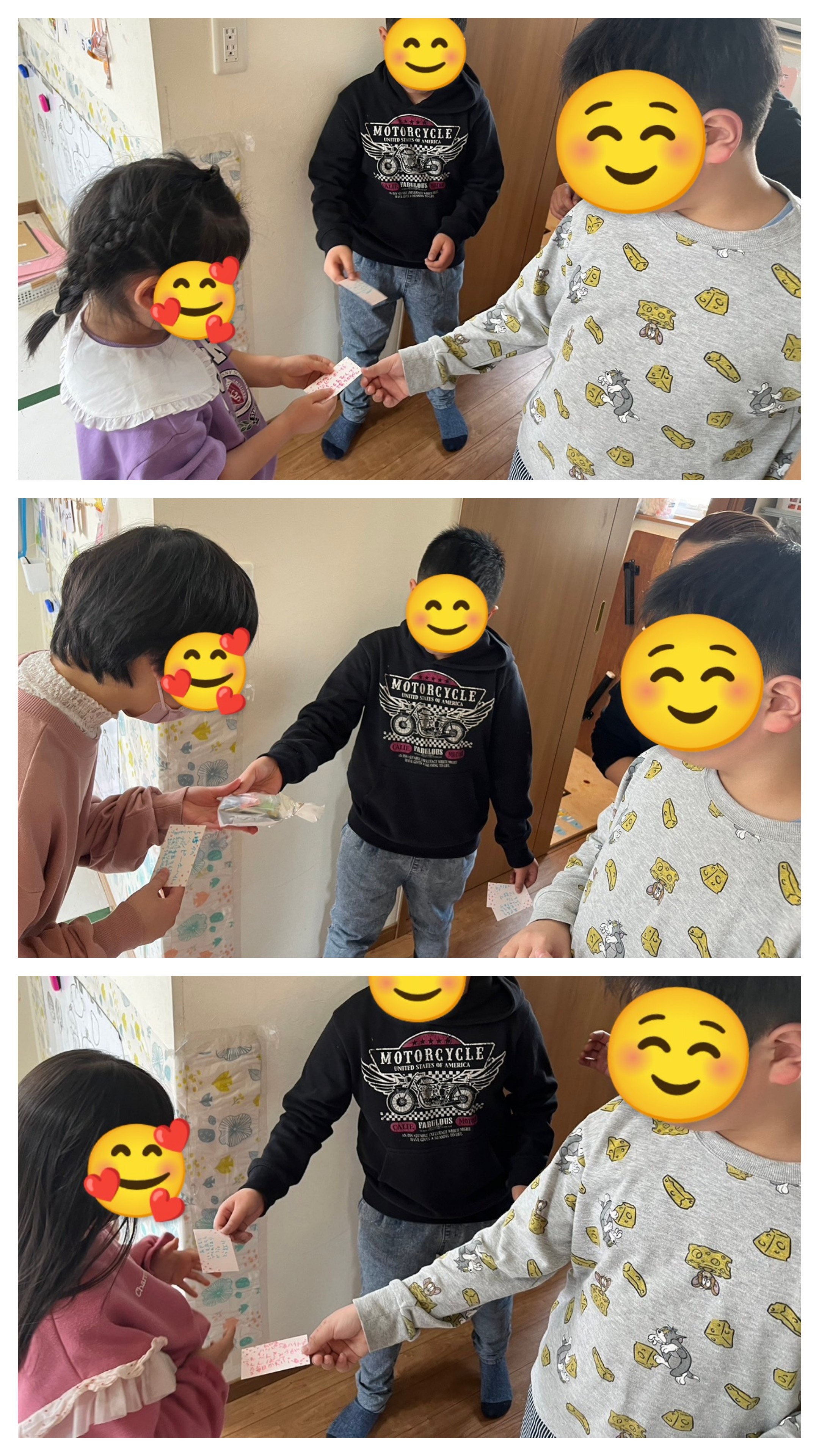 プチプレゼントを手に喜ぶ姿、お友達とのおやつタイムに笑顔いっぱい(*˘︶˘*).。*♡