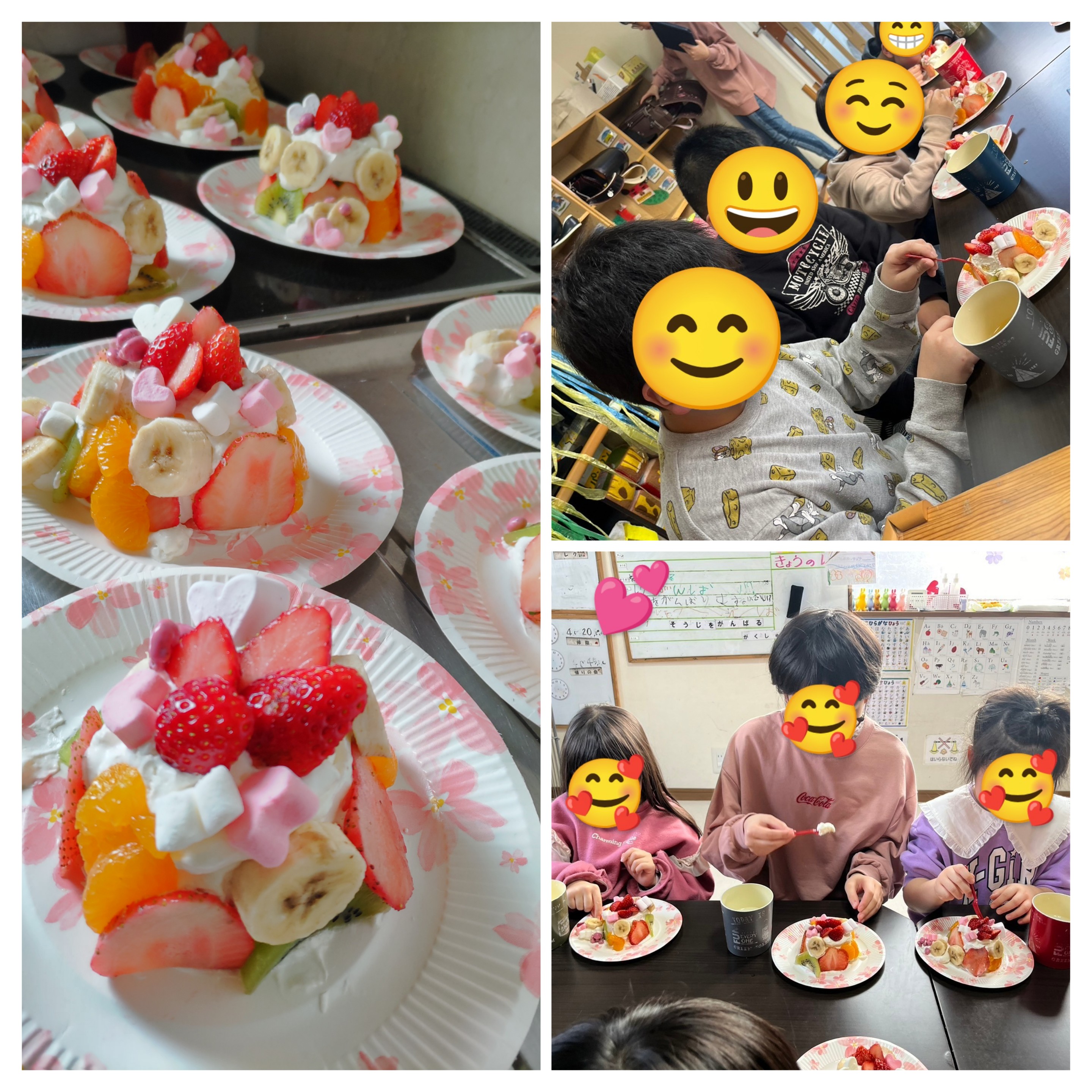 何を作るか、材料は何が必要か、フルーツ選び盛り付け等男の子達が考えてホワイトデー特別おやつ完成しました(◍•ᴗ•◍)❤