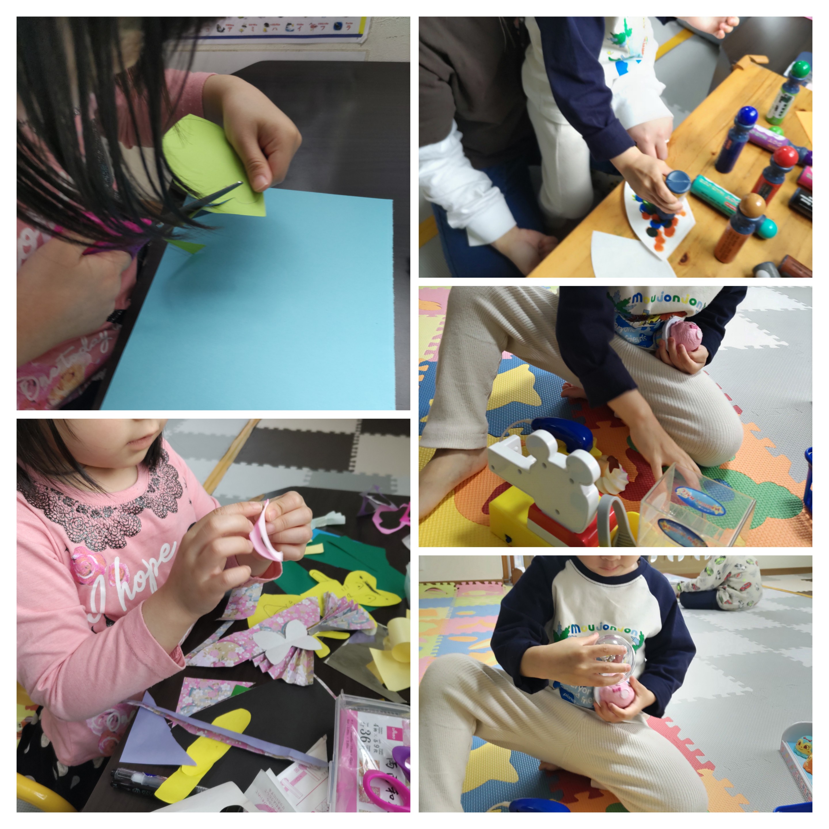 ハサミ練習を兼ねた折り紙遊びやお店屋さんごっこに夢中(*´ω`*)
