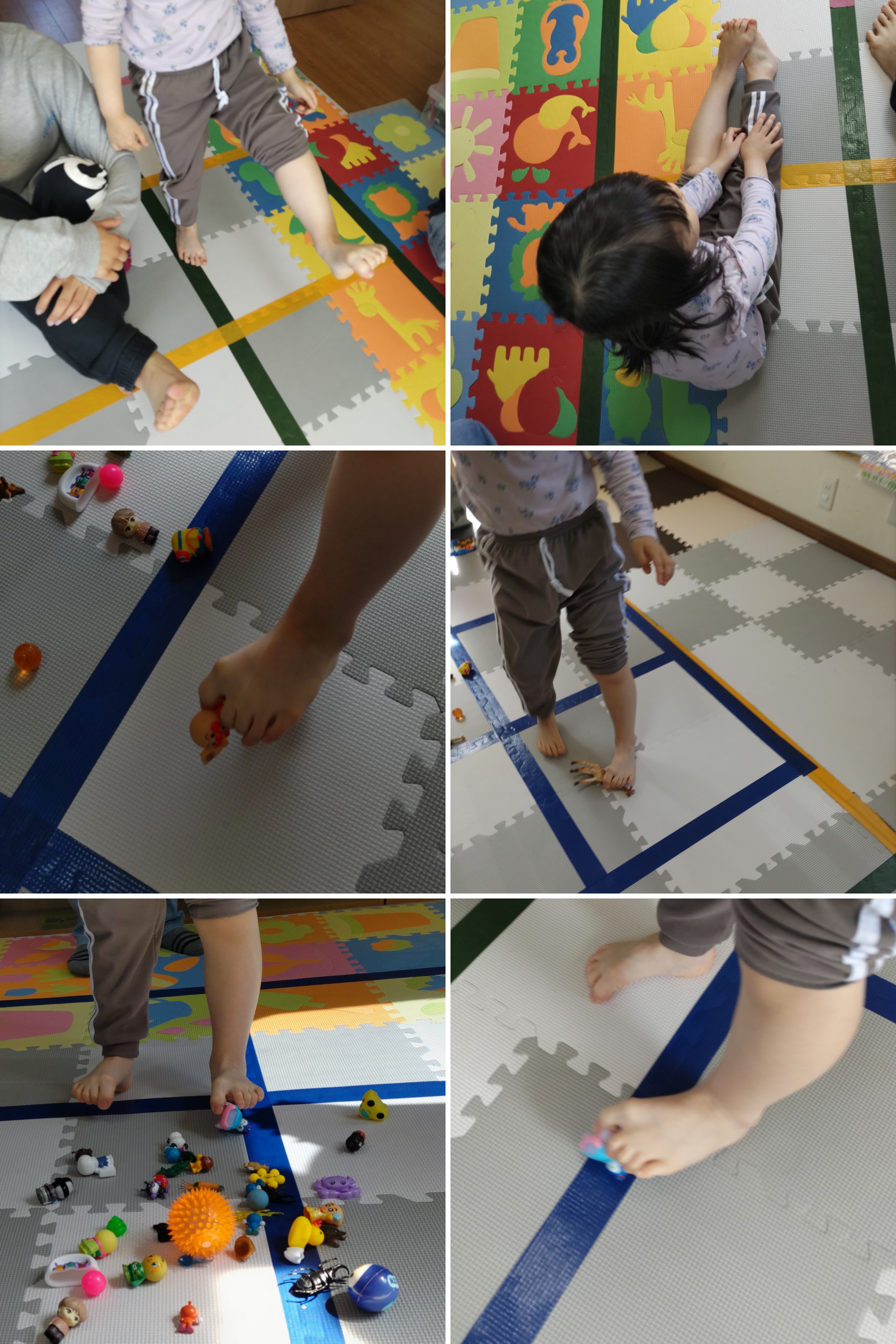 足の指の力を使い感触、大きさの違うボールやマスコット等を運びました୧( ˵ ° ~ ° ˵ )୨