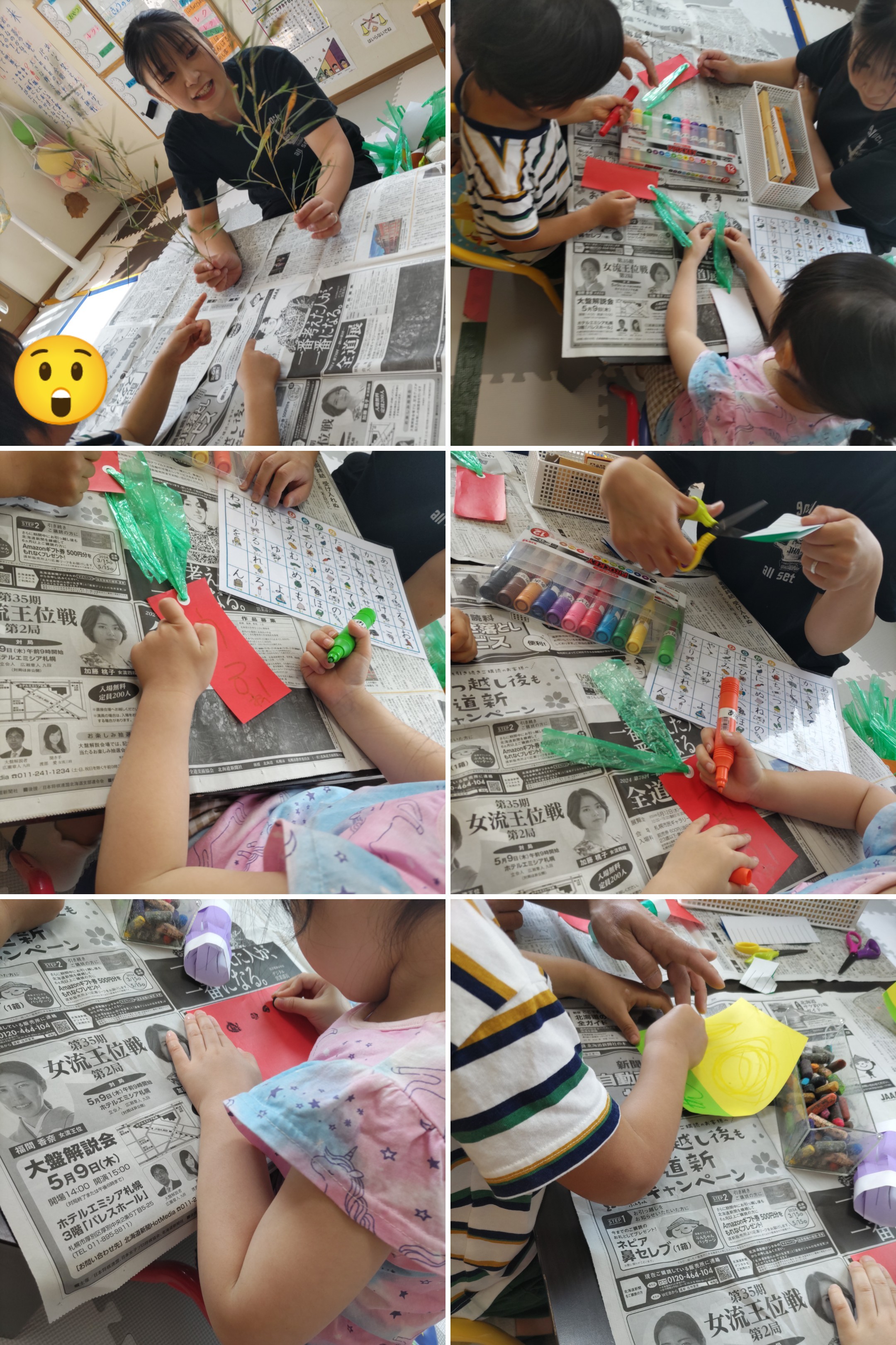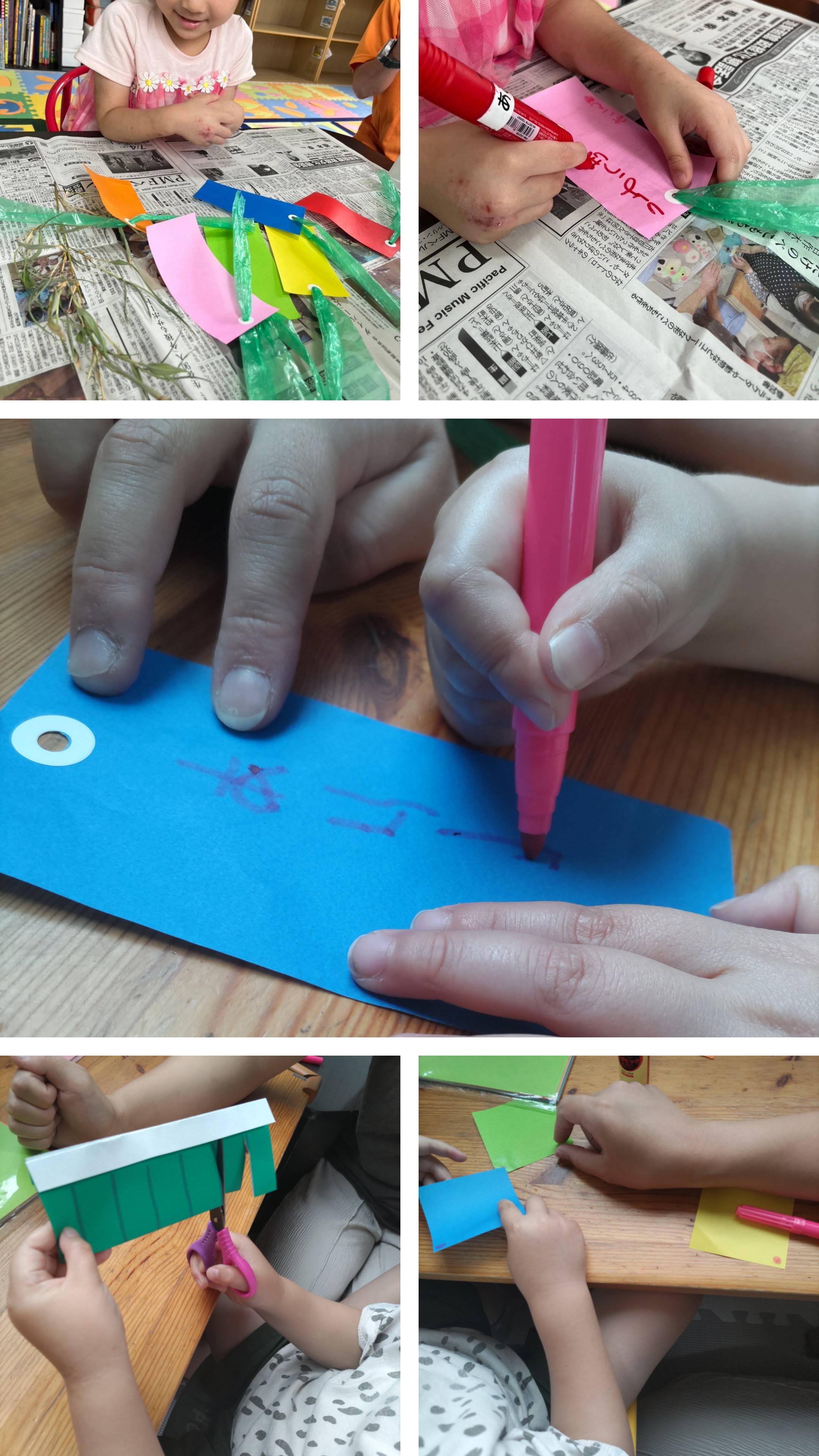 短冊に願い事を書いた後は飾りづくり♫