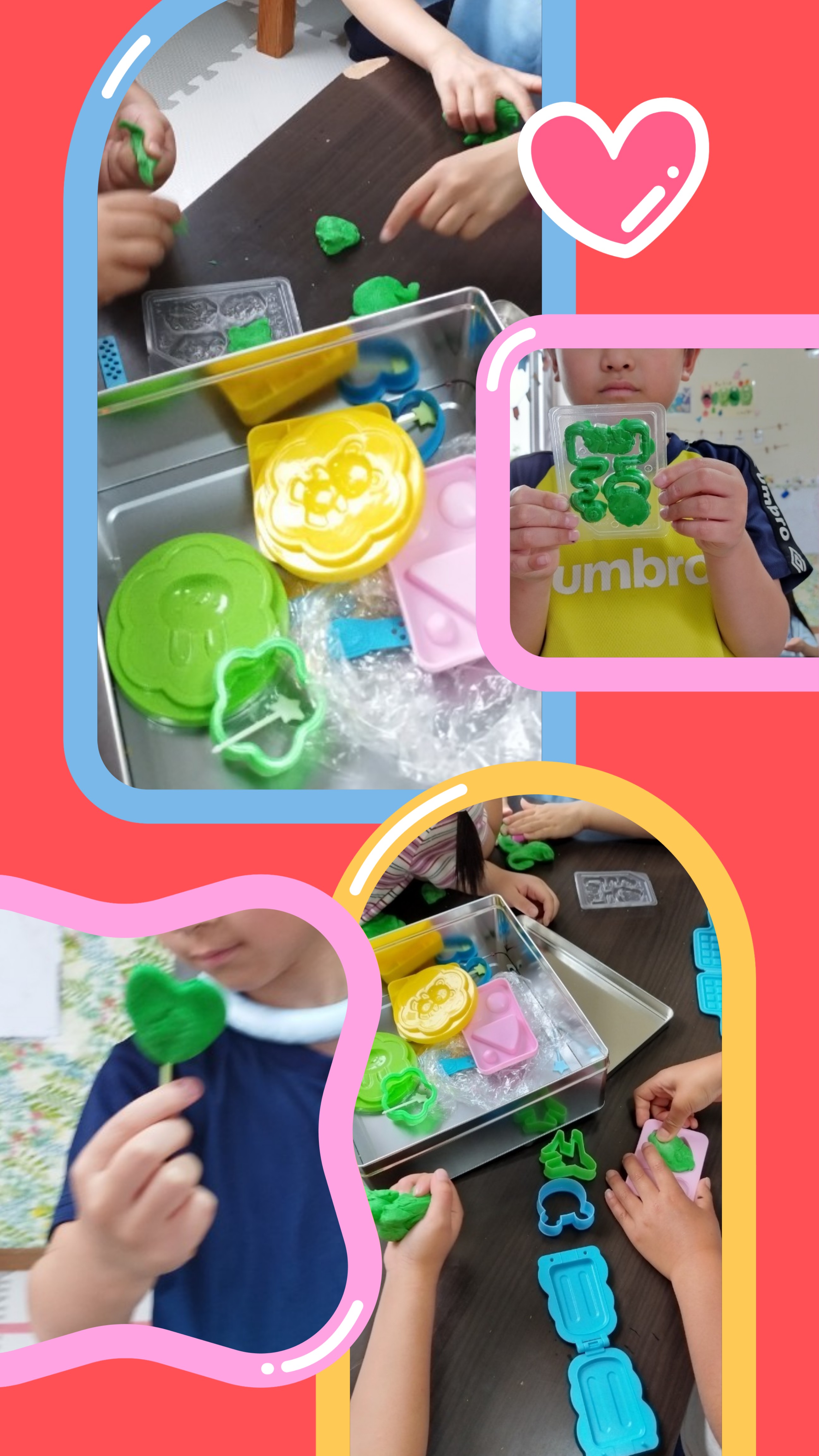感触を楽しみながら創り上げお友達と見せ合いっこ( ˶ ❛ ꁞ ❛ ˶ )