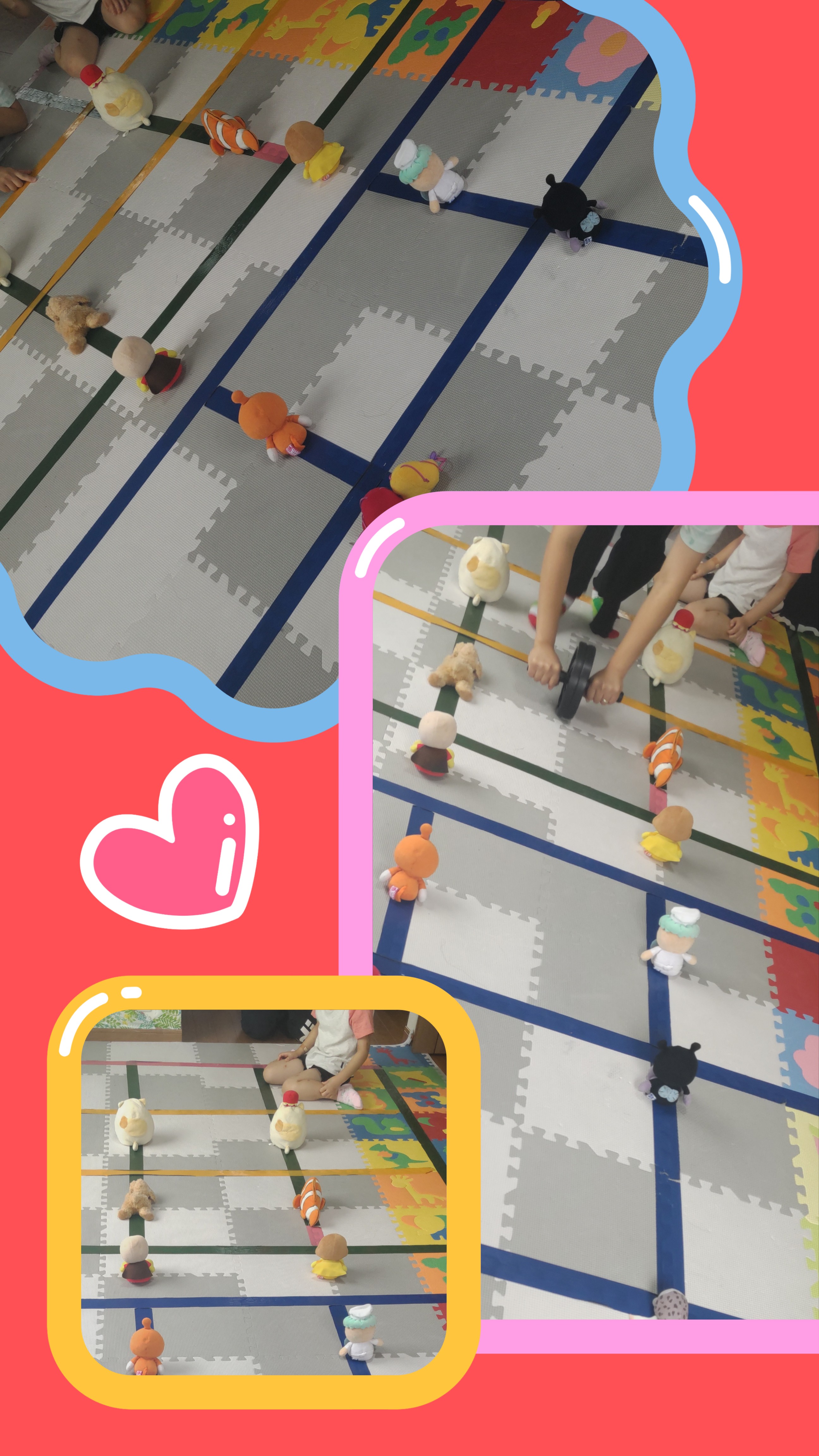 腹筋ローラーを使用し、ぬいぐるみの間をくぐり抜けるレース開催!!