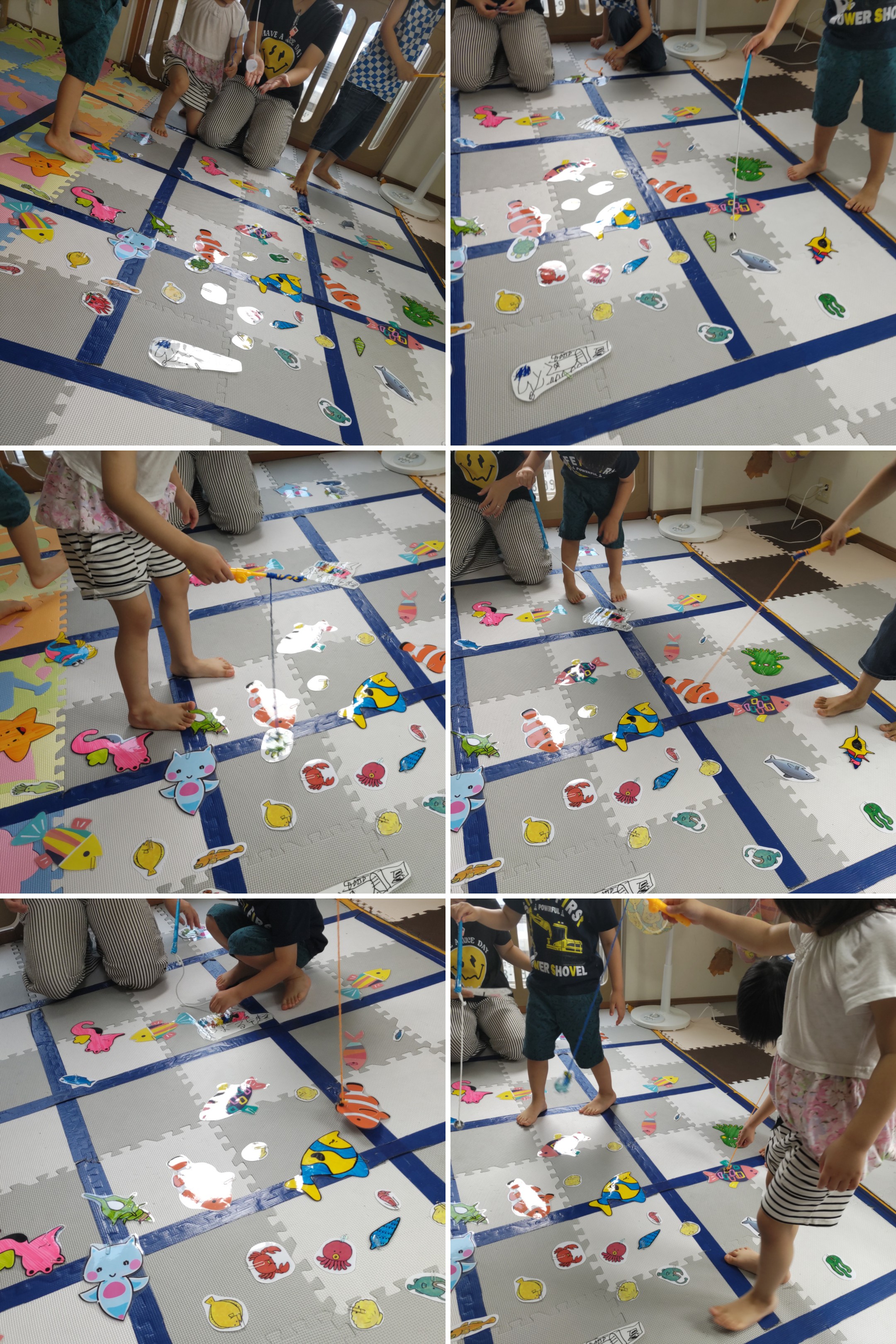 ユラユラ揺れる釣り糸の先についてる磁石とお魚についてるクリップにくっつける集中力が育まれるお魚釣り。
