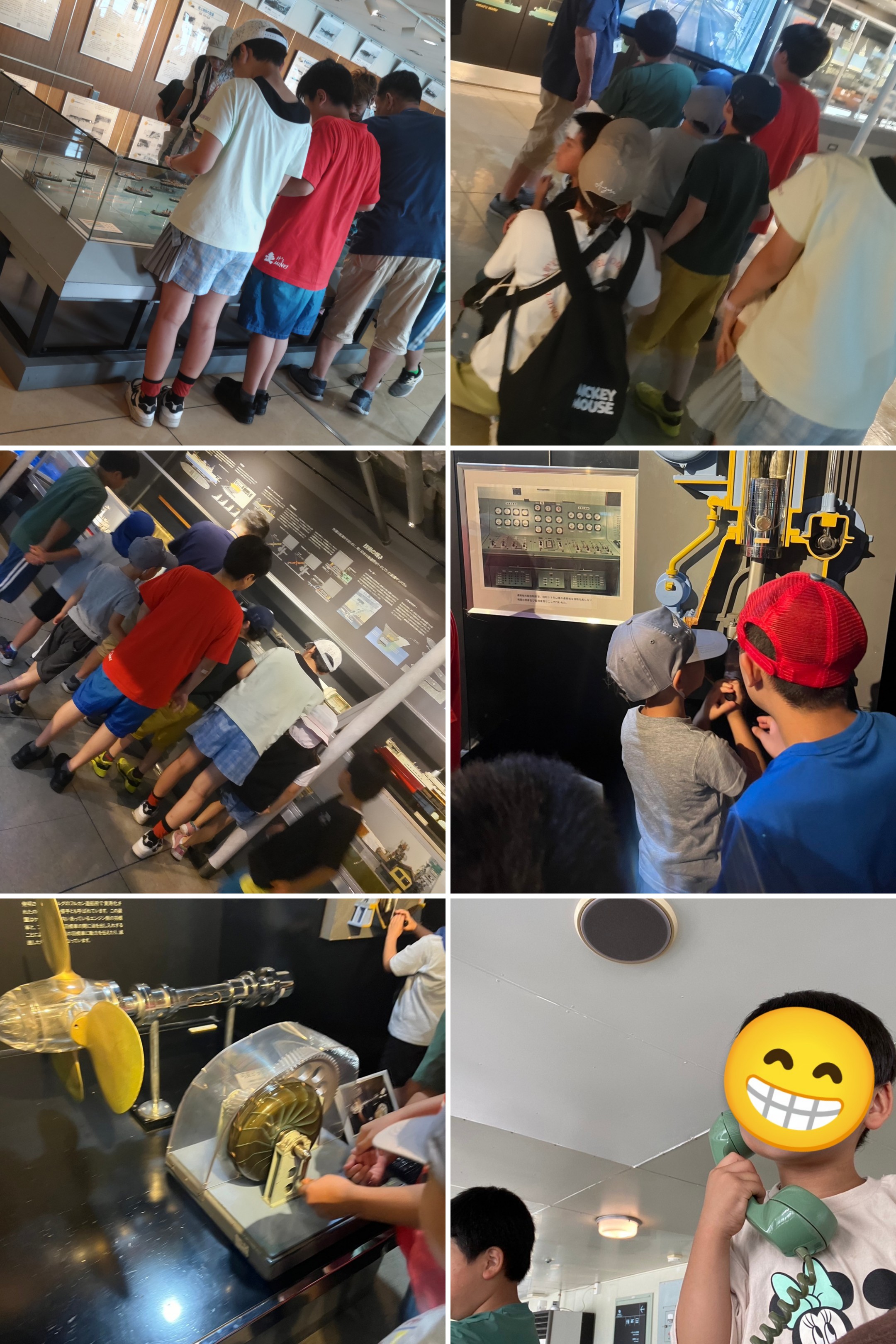 大きなハンドル、無線機、エンジン、実際に使用されていた物に触れ体験!!
