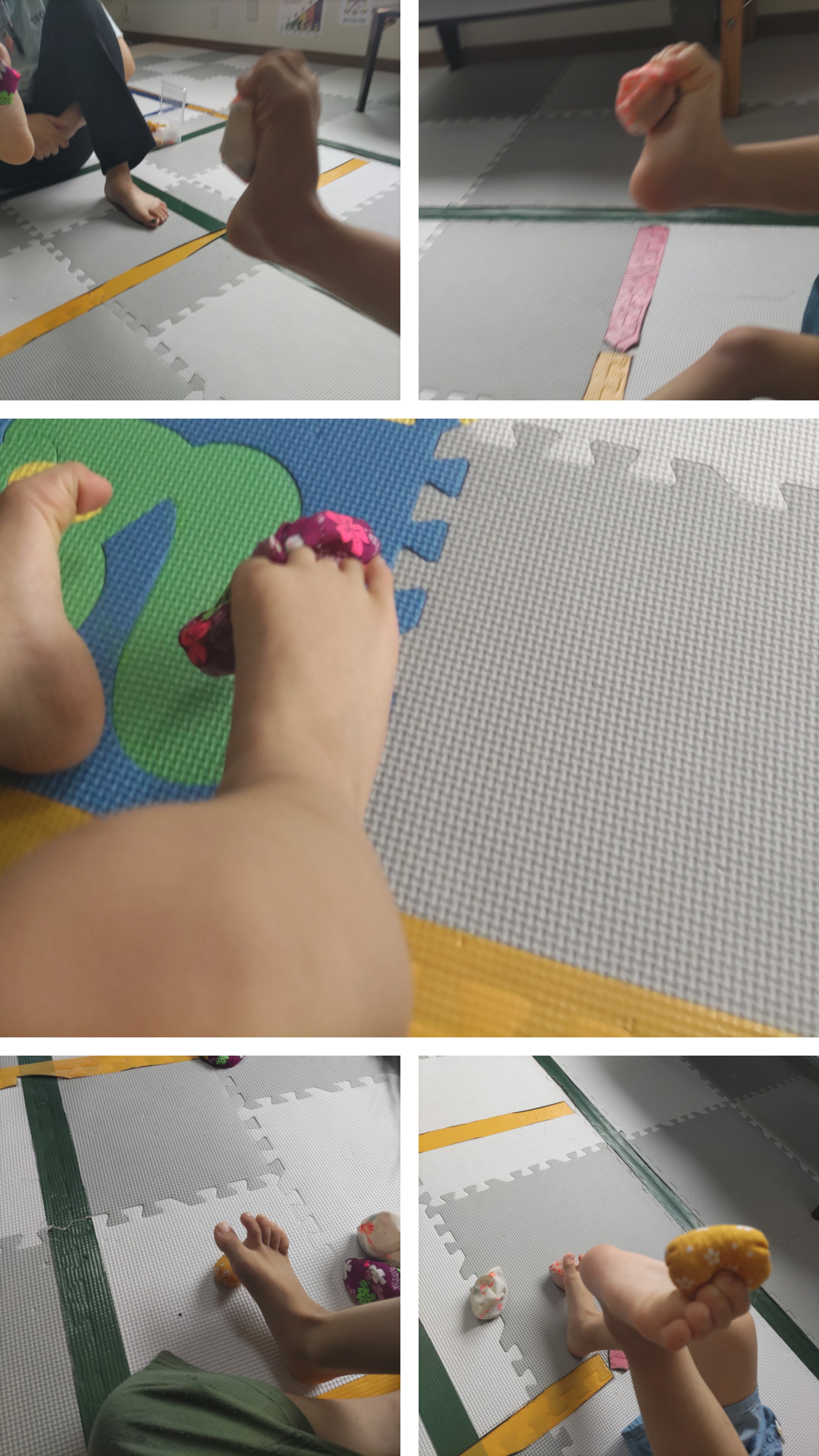 足の指の力を使いお手玉にぎにぎキャッチ!!