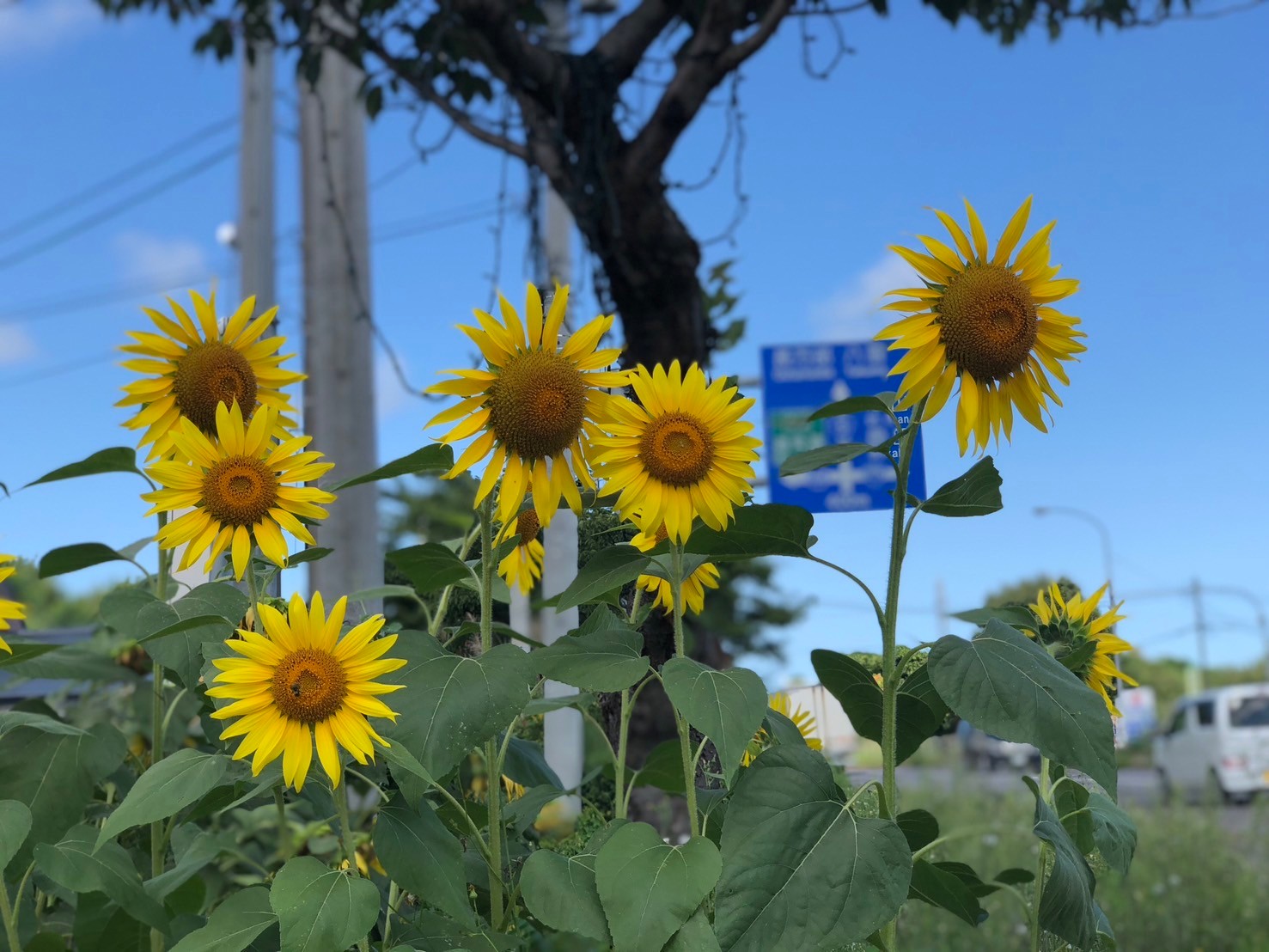 夏はまだ終わらないよ!!と伝えてくれてるかのように見事に咲き誇る向日葵。