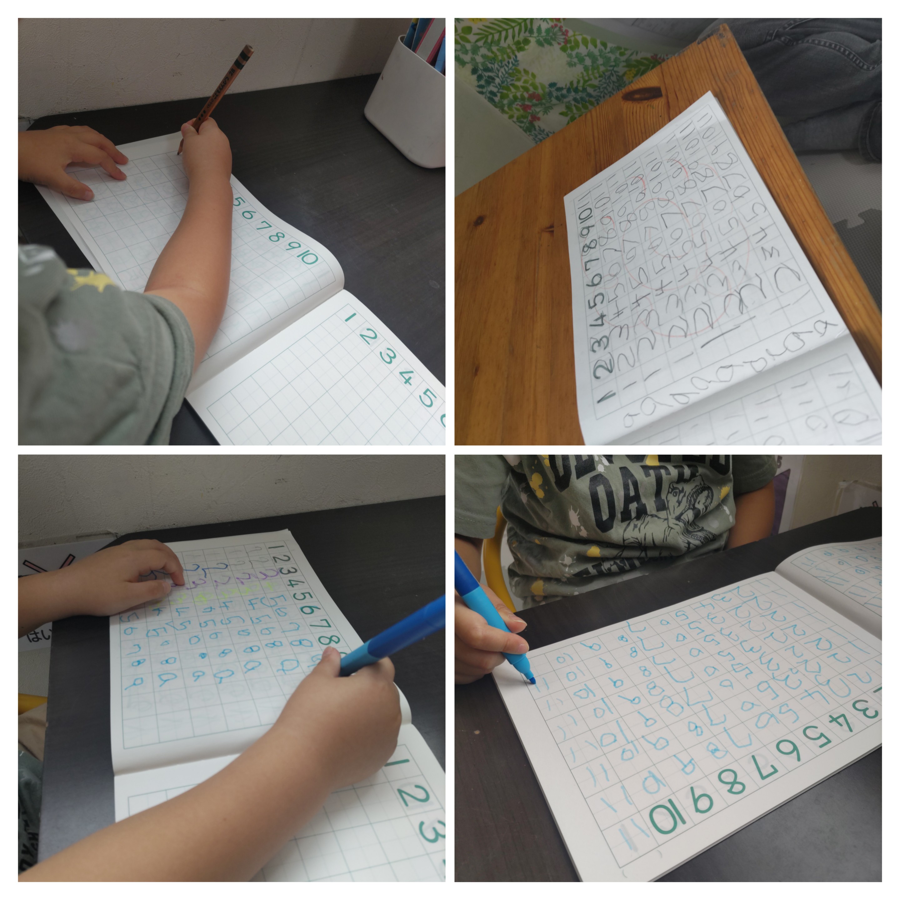 好きなカラーペンを選び楽しみながらも集中力高く10までの数字を2ページ書き上げました!!