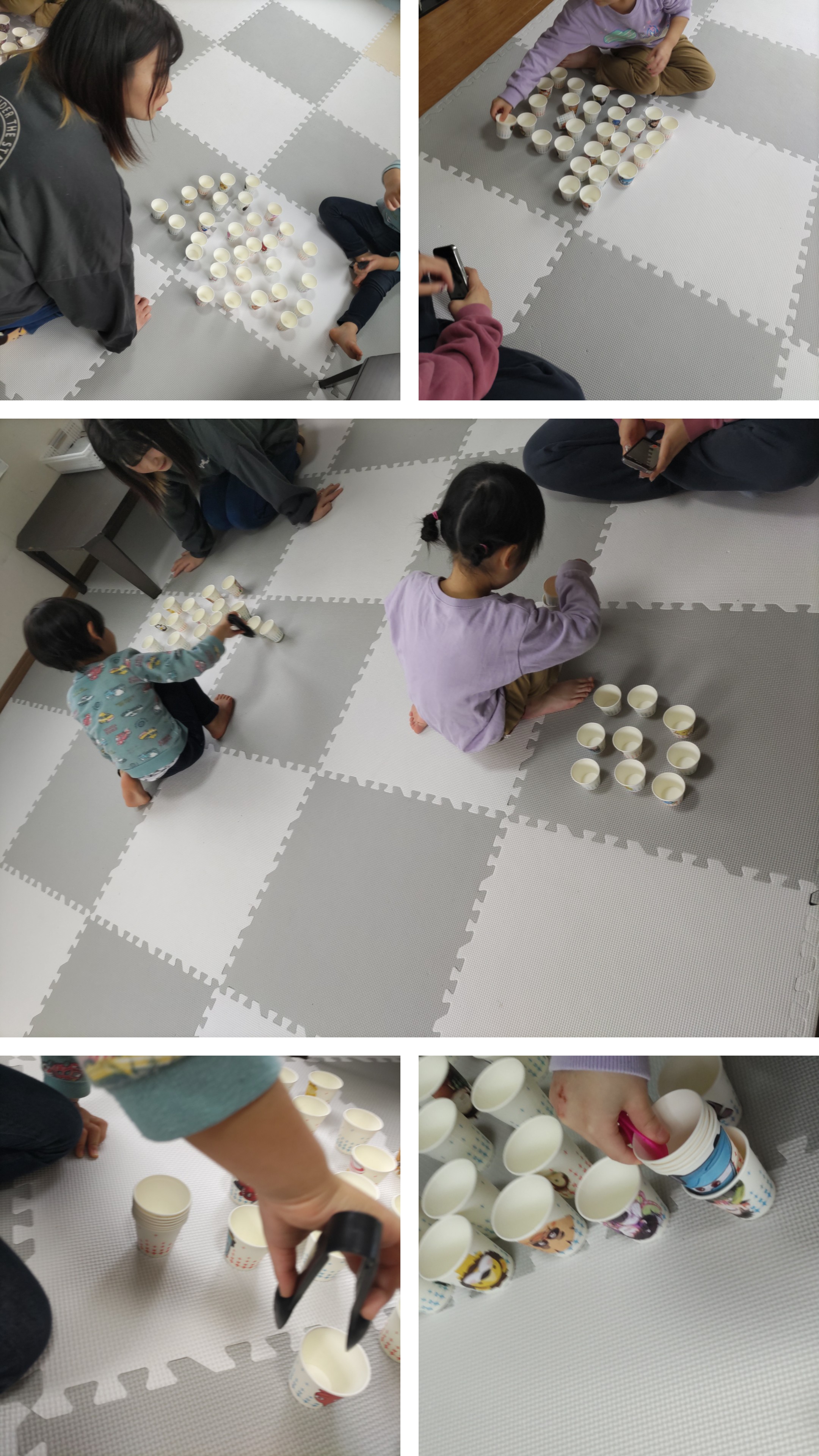 紙コップのキャラクターを確認しながらトングで一つづつ重ね全部集めた達成感溢れる笑顔とびっきりでした( ◜‿◝ )♡