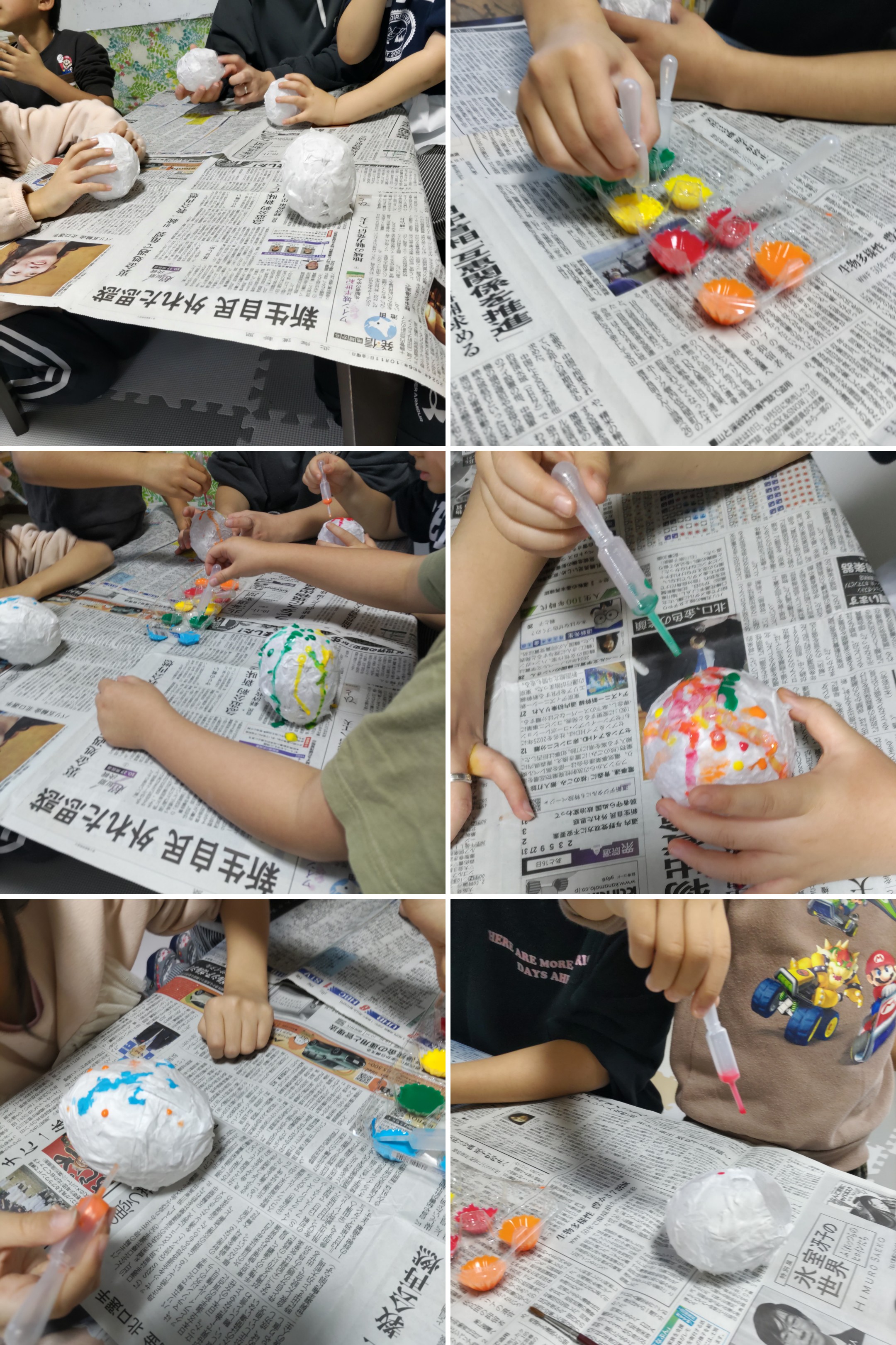 スポイトを使用することで、ポトポトじんわり半紙に色が染み込み混じり重なりを視覚で楽しみながら制作( ◜‿◝ )♡