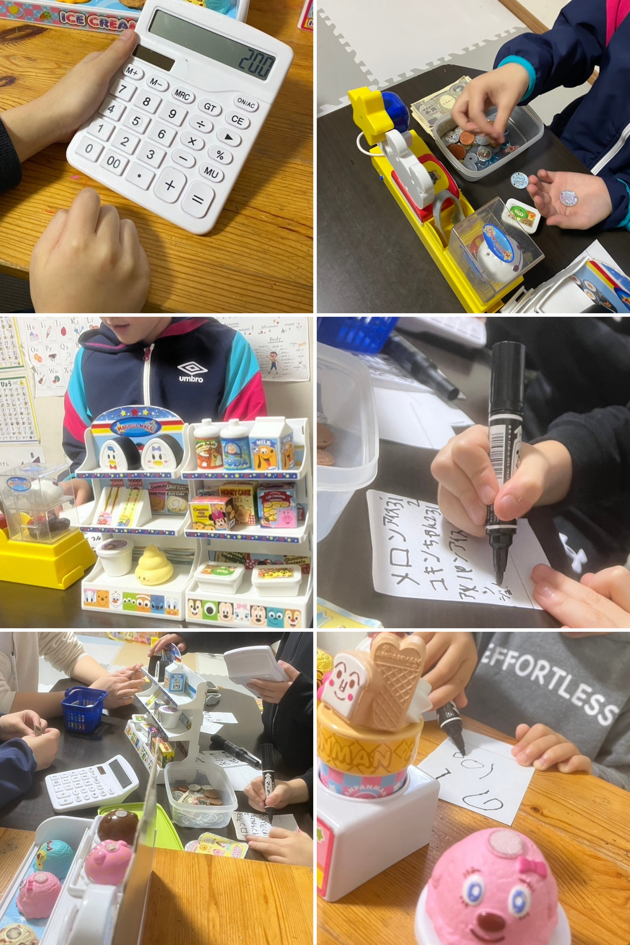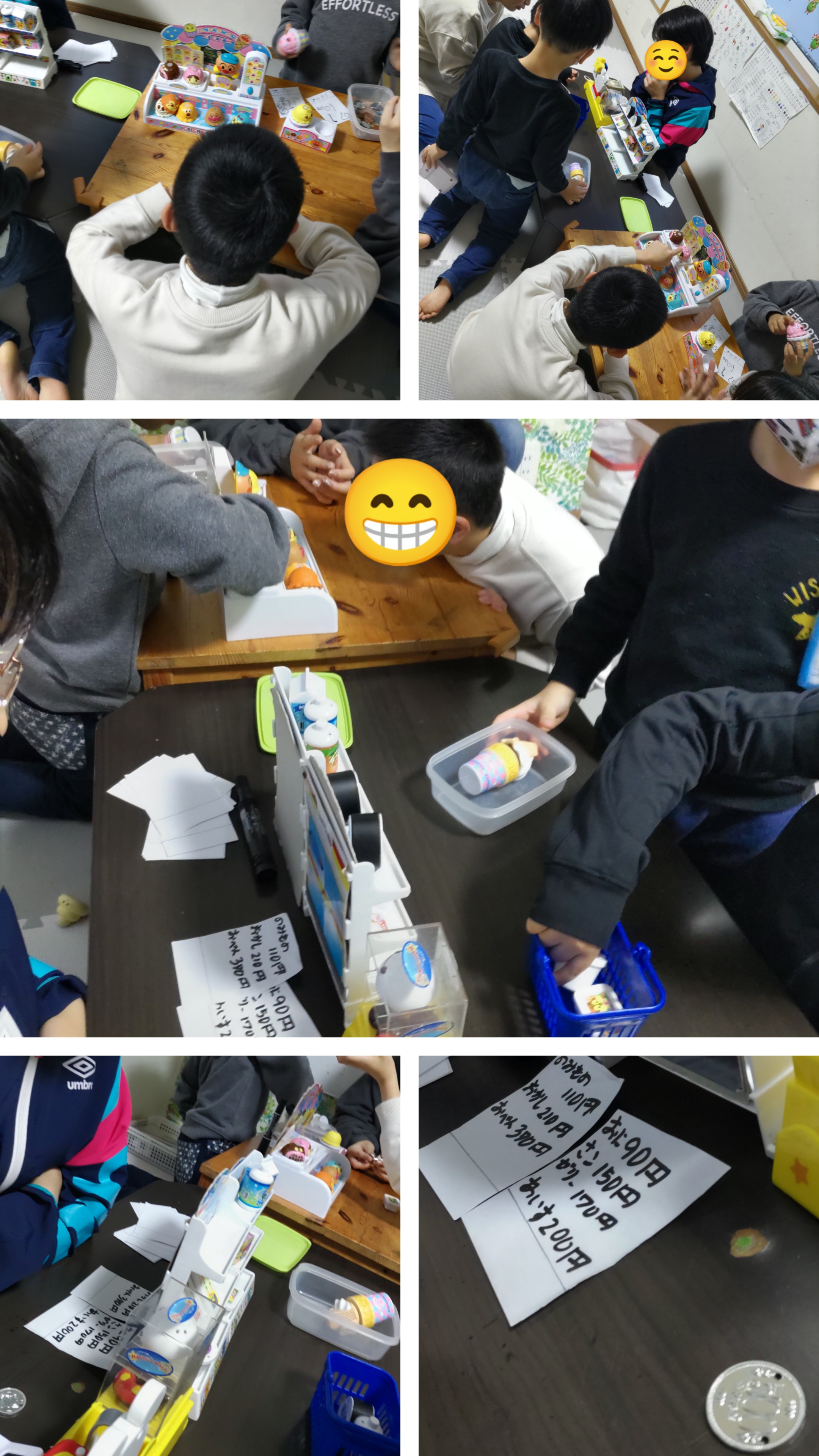 お客さんは、決められた金額の中で店員さんに値段を確認し自分達で計算しながらお買い物するよ(. ❛ ᴗ ❛.)