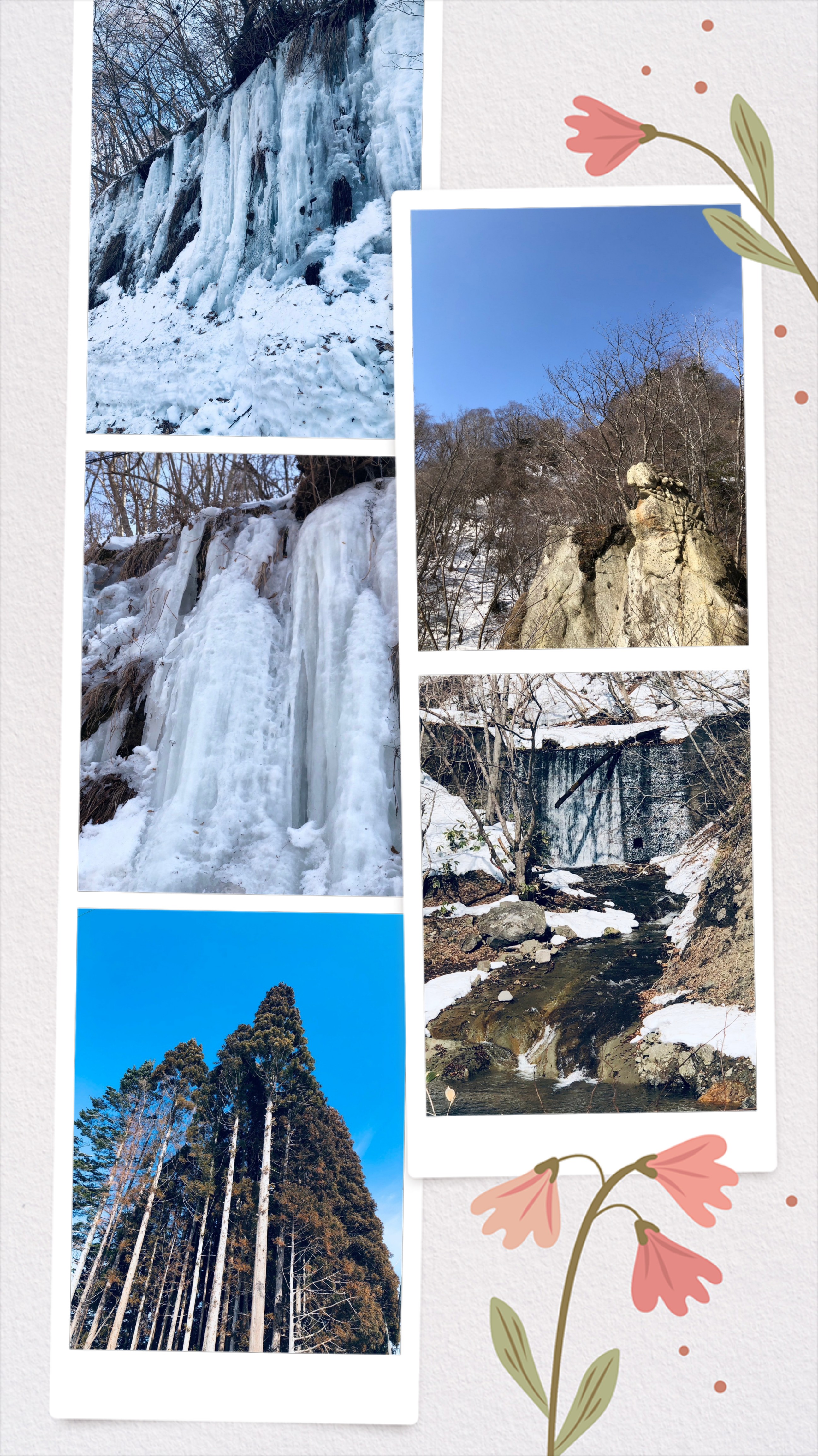 鳥崎八景への道も雪解けが進み流れに沿って凍った形がとても綺麗です( /^ω^)/♪♪