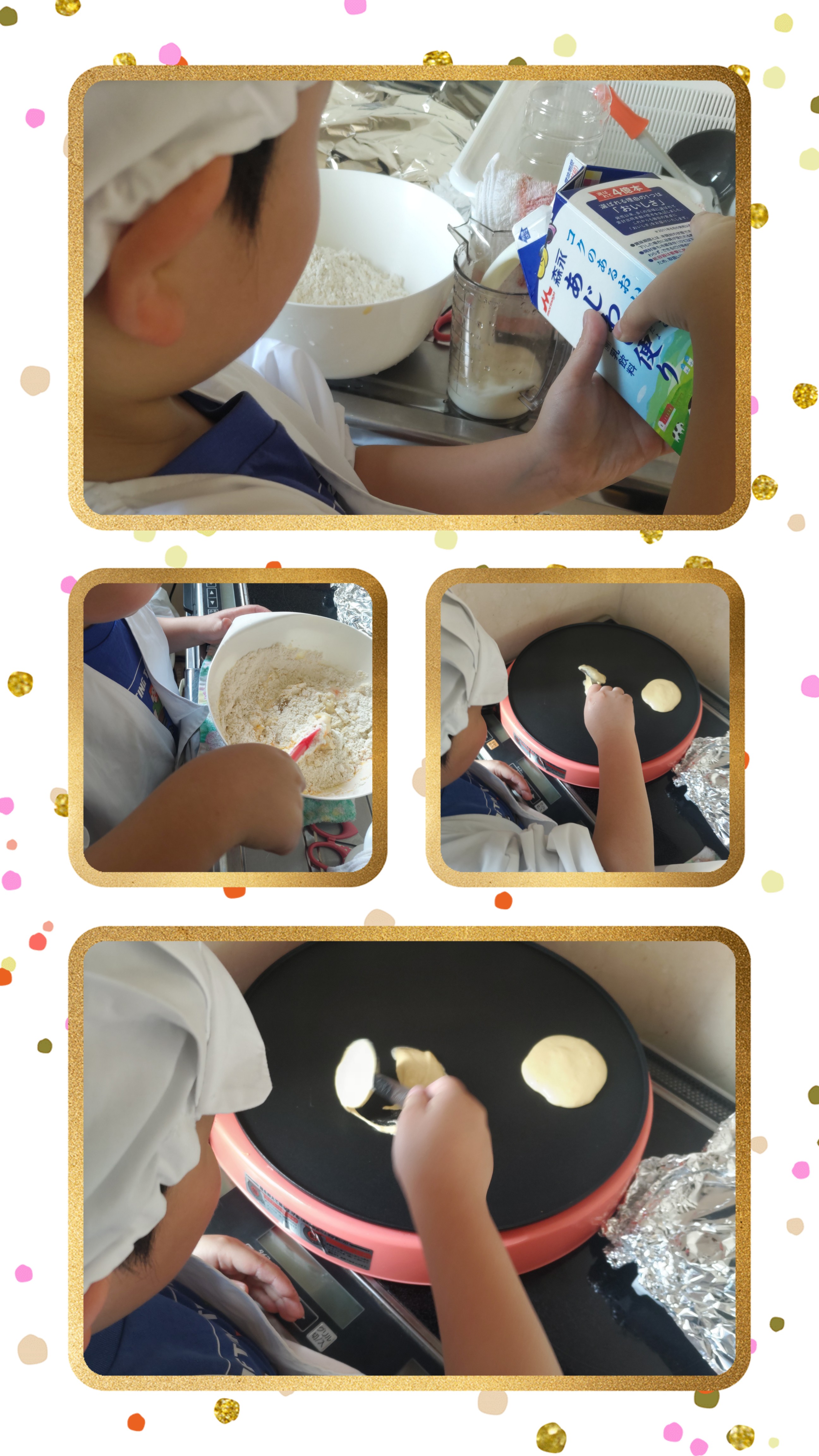 初めて男の子達も自分達焼いたホットケーキ美味しさも倍増!!