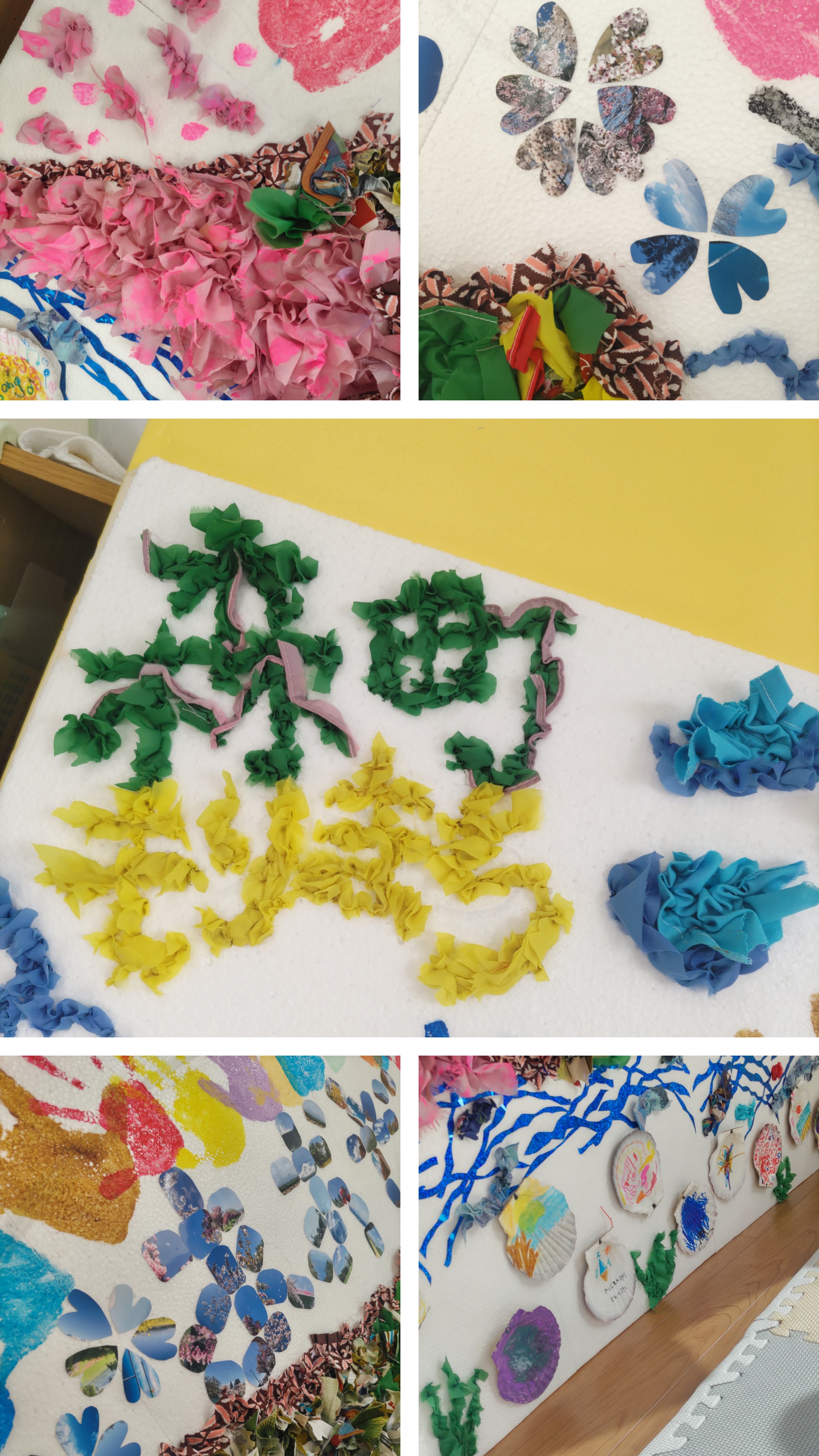 今年は、古着や端布を再利用し発泡スチロールに埋め込みしました。