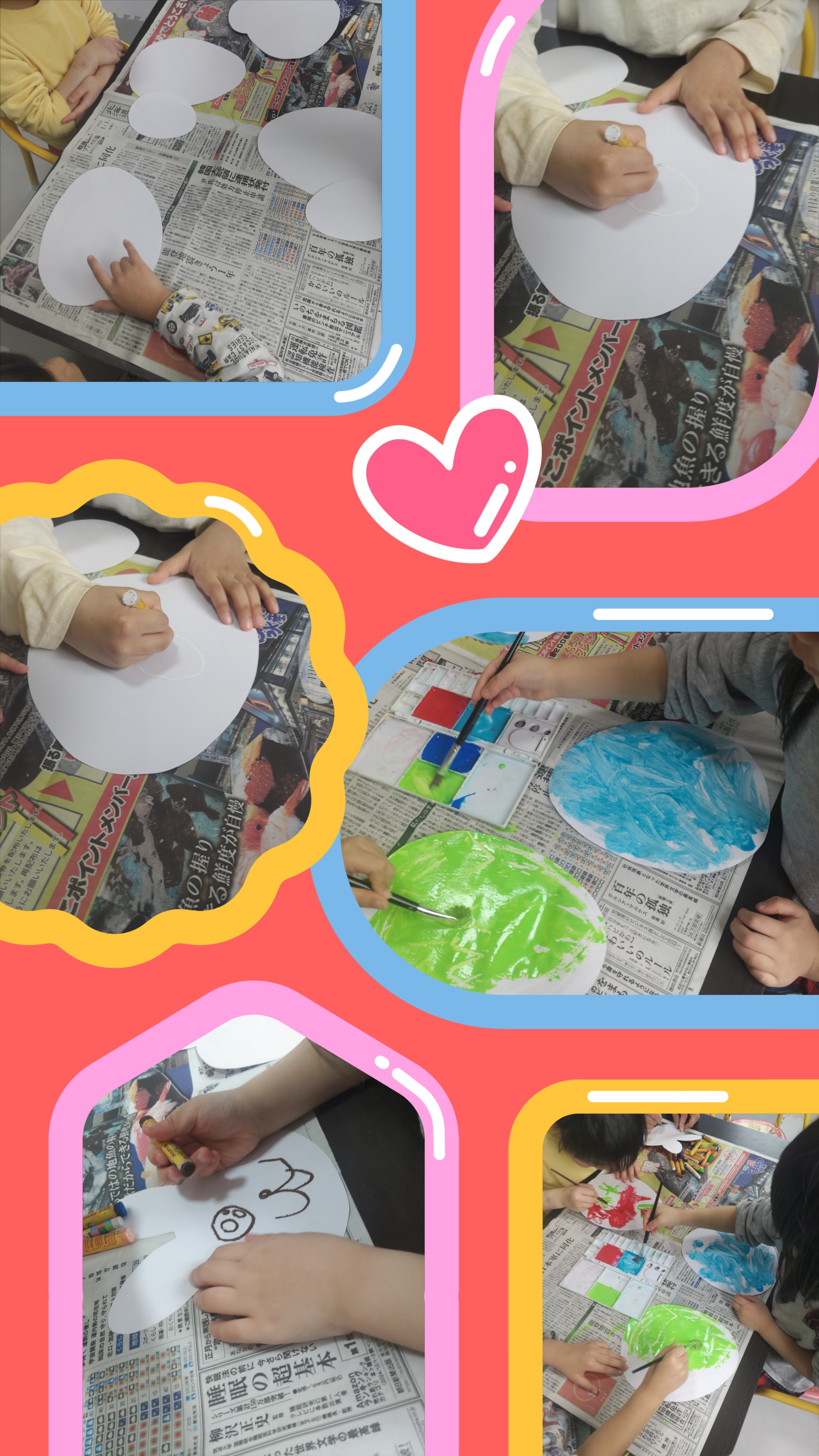 うさぎさん型の画用紙には顔を描いてかわいい仕上がりとなりました( ◜‿◝ )♡