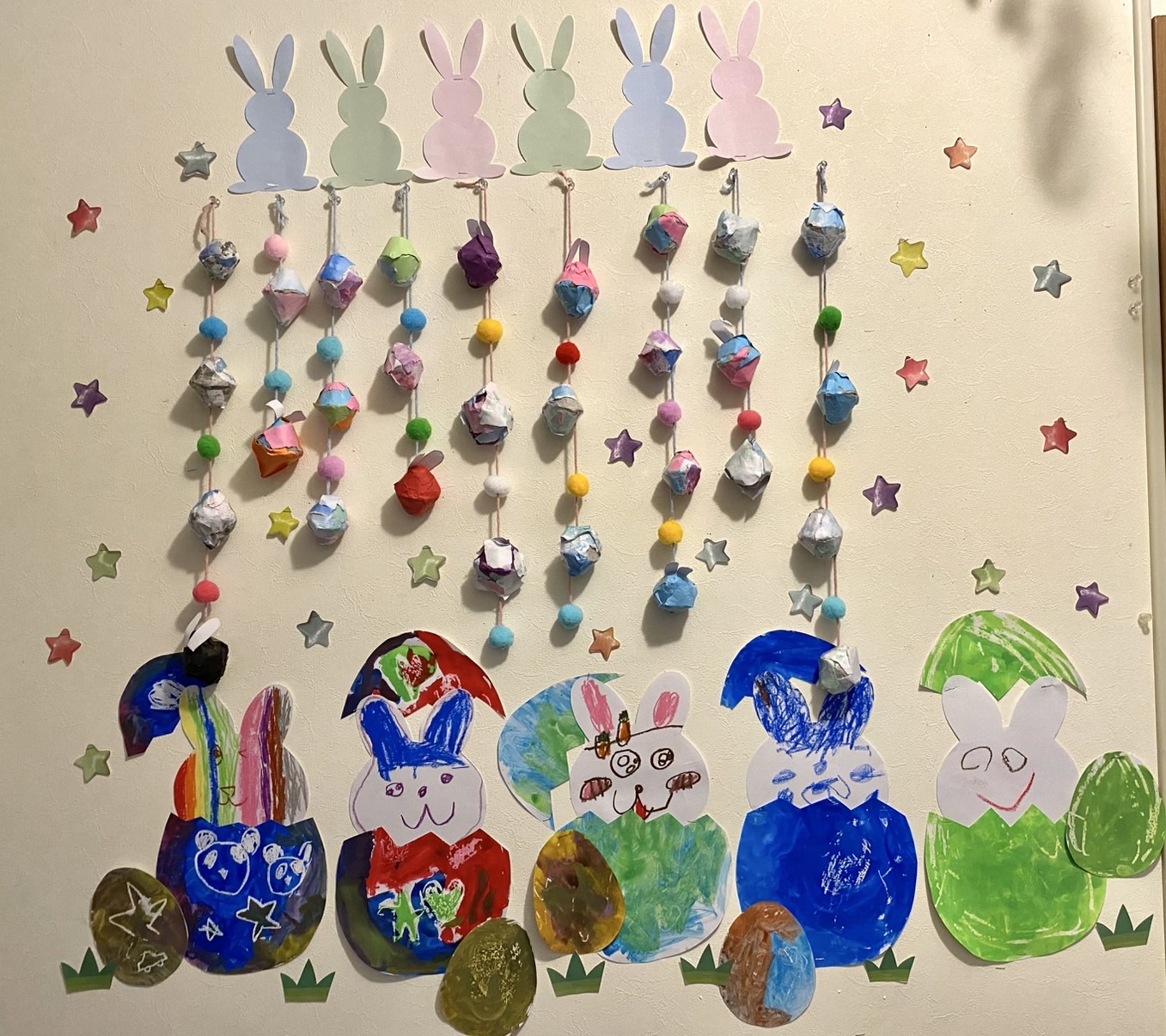 4月壁面製作に取り組みオリジナルたまご作りに挑戦!!