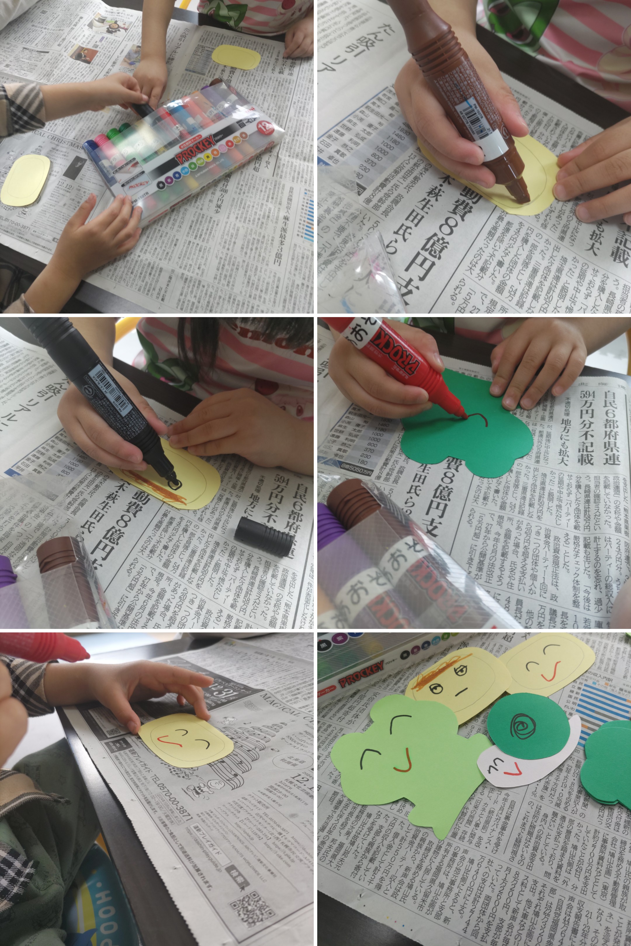 次はカエルさんとカタツムリさんの顔を描きますよ(. ❛ ᴗ ❛.)
