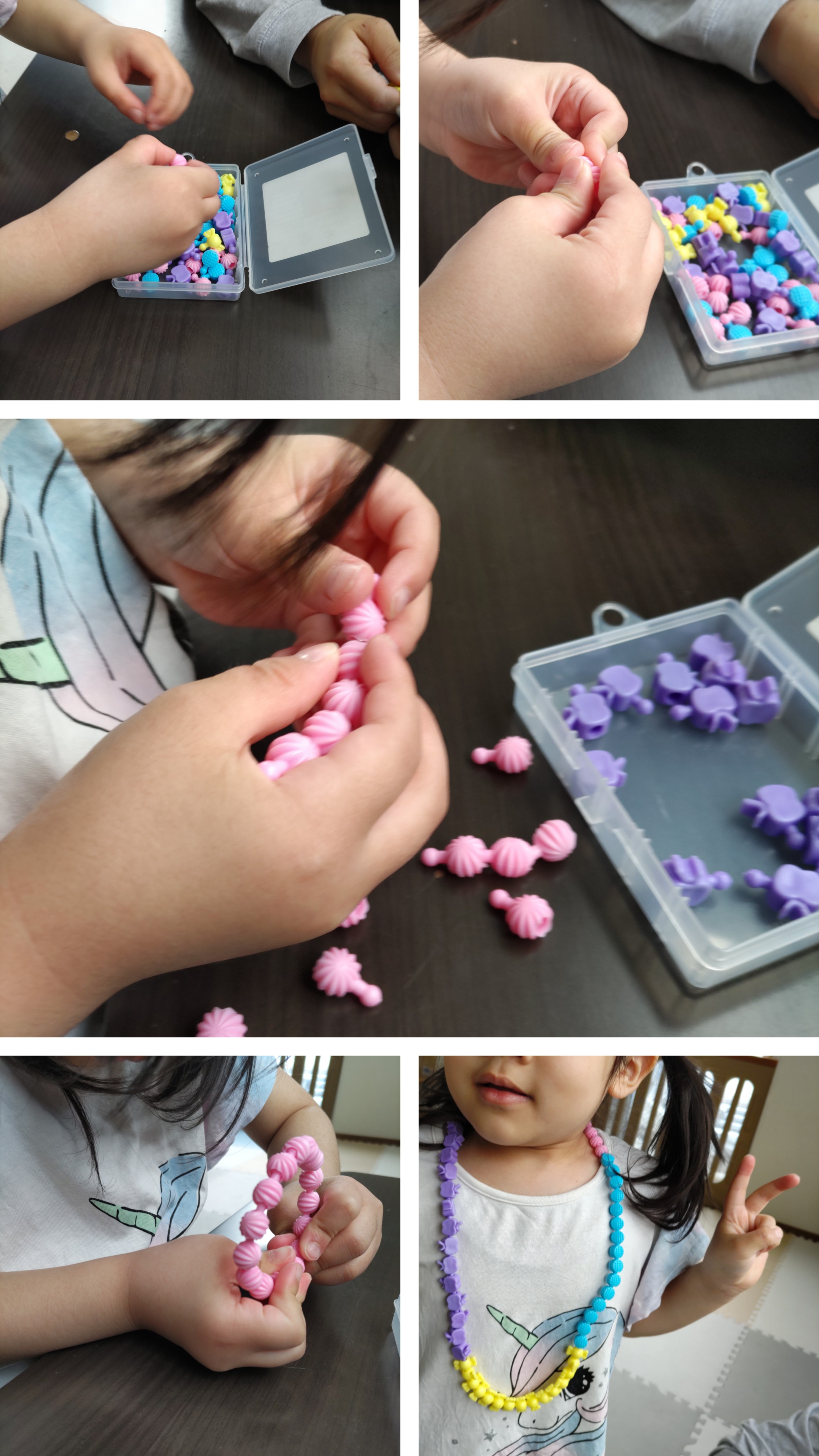 指先の力を育むプチプチビーズ繋ぎ。