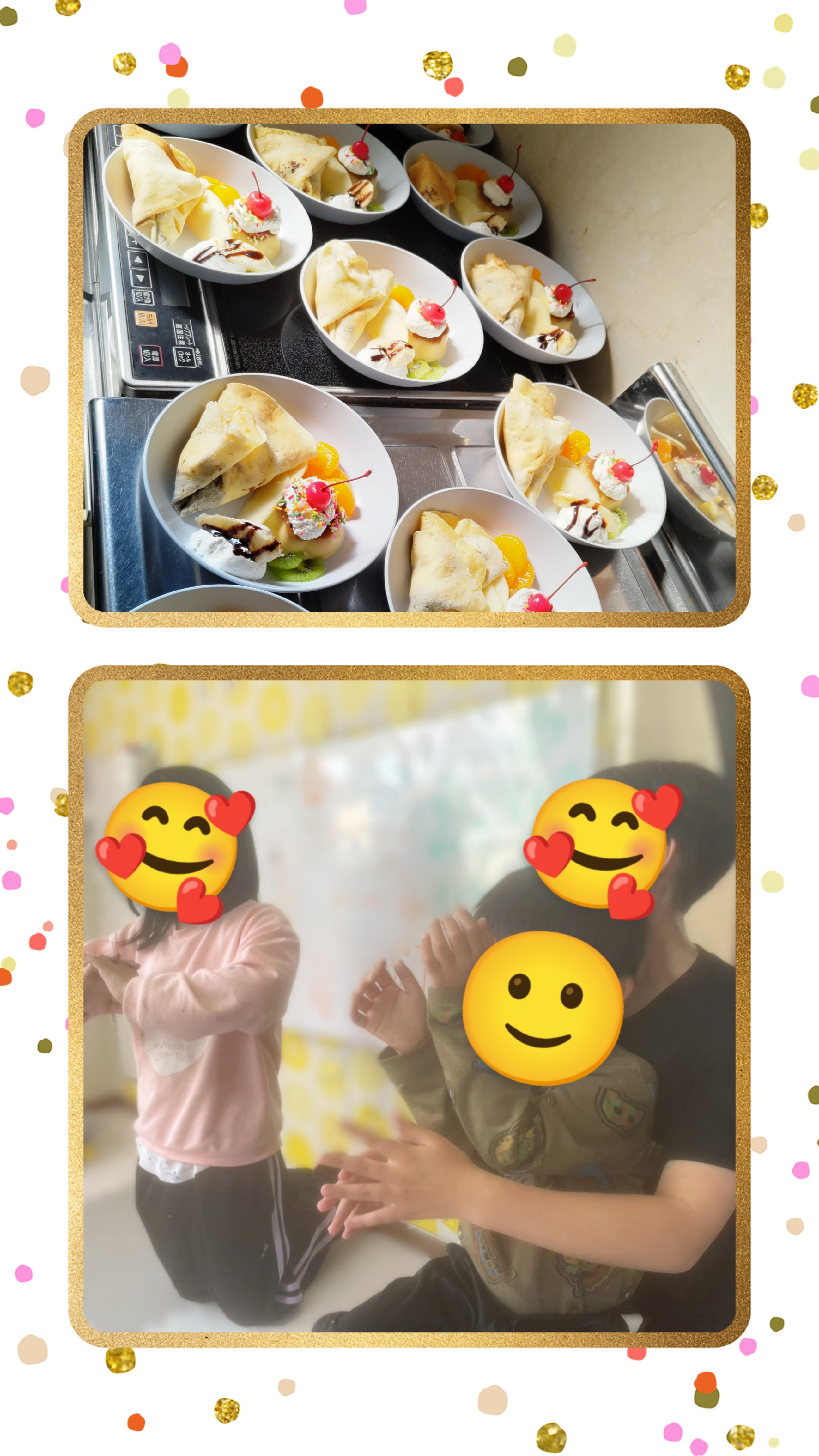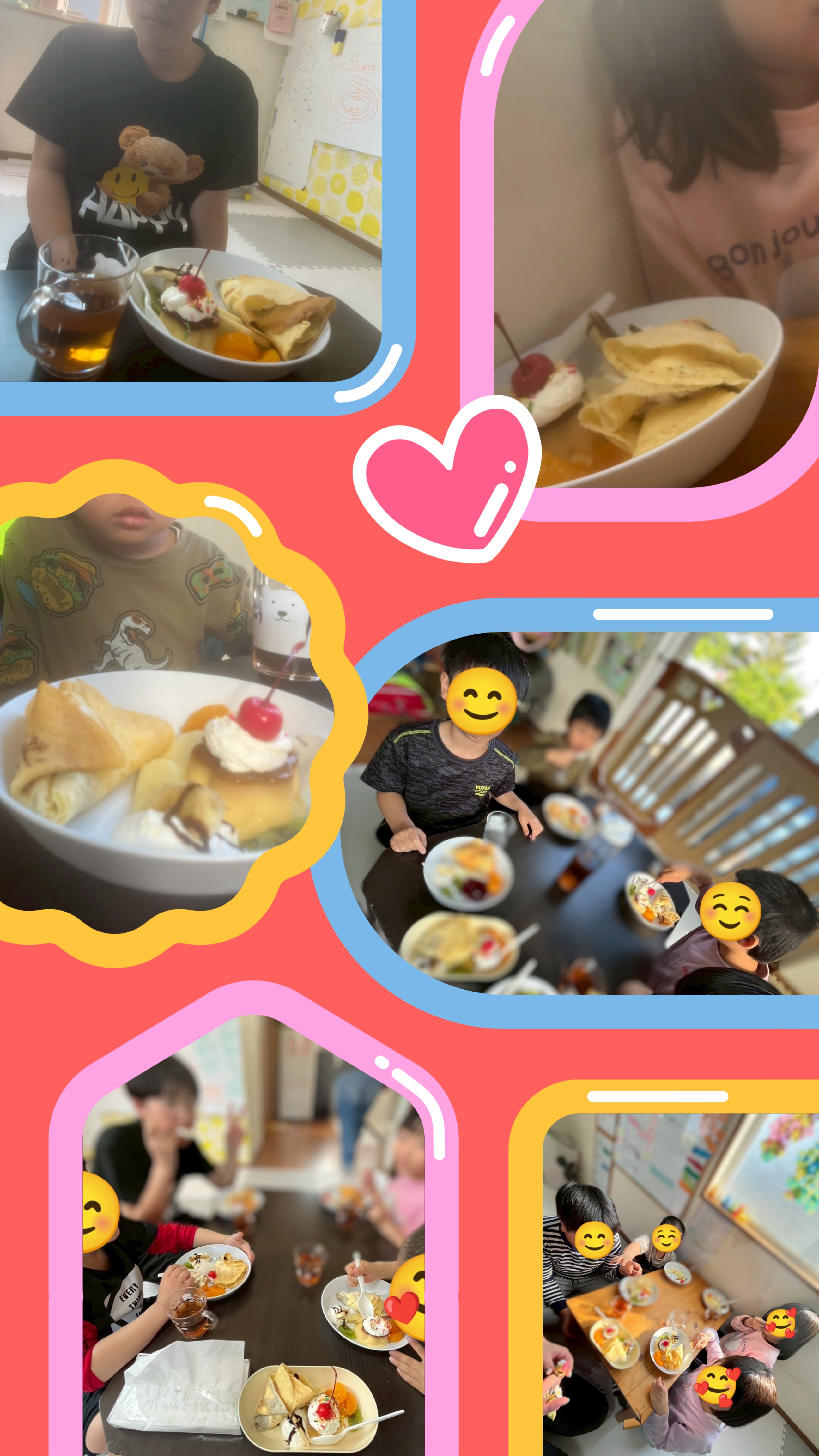 お友達とニコニコ♡口のまわりいっぱいに生クリームや