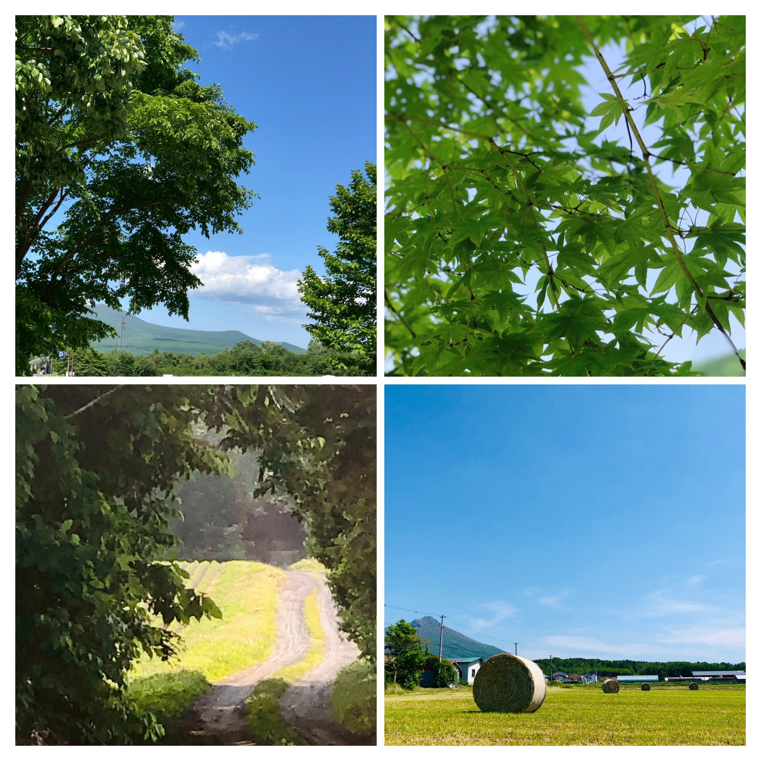 木々が緑々しさを増し青空が眩しく、夏の風物詩の一つ牧草ロールも沢山つくられてました(. ❛ ᴗ ❛.)
