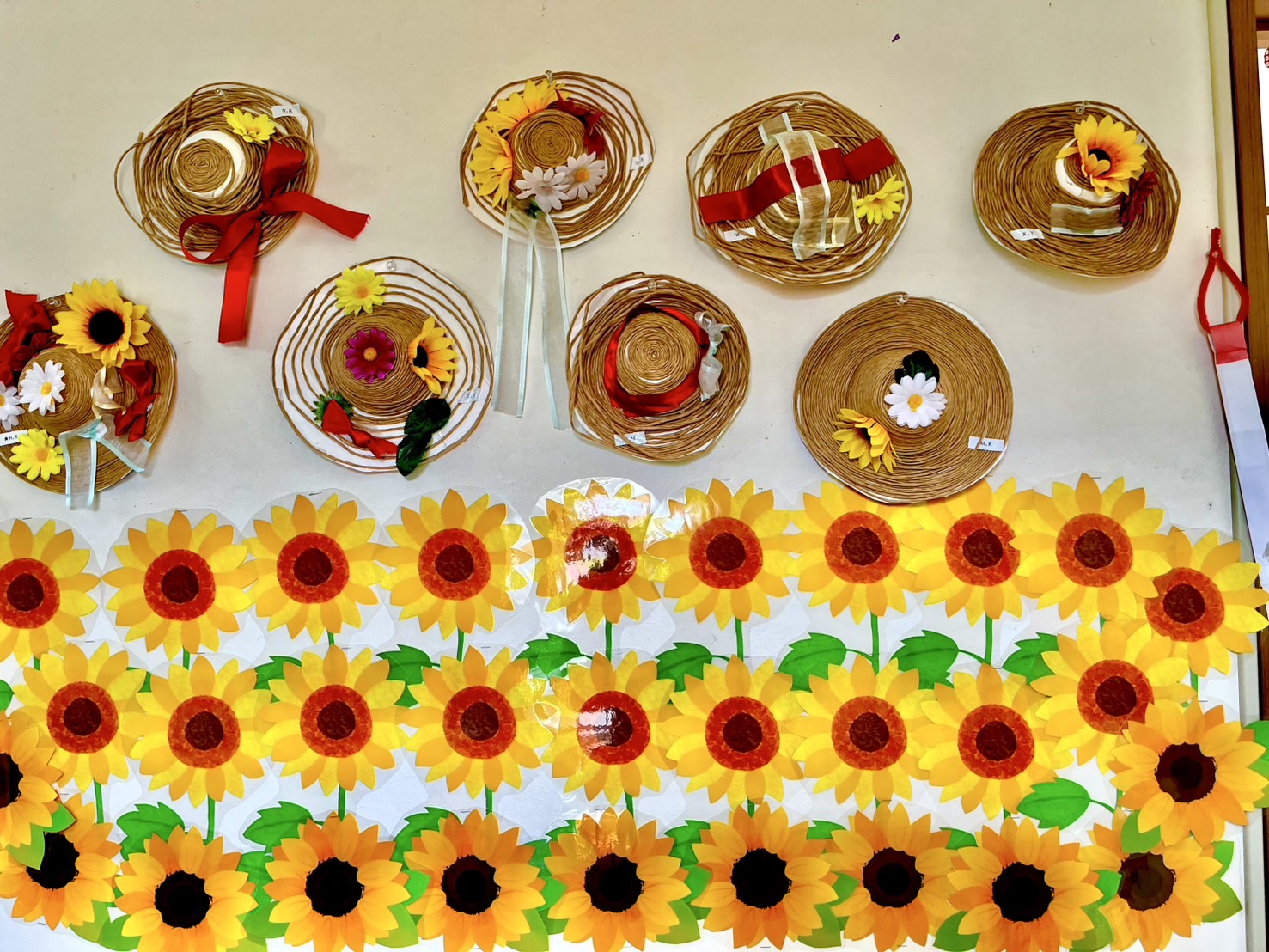一人一人が作った麦わら帽子が向日葵畑に集まりました╰(⸝⸝⸝´꒳`⸝⸝⸝)╯