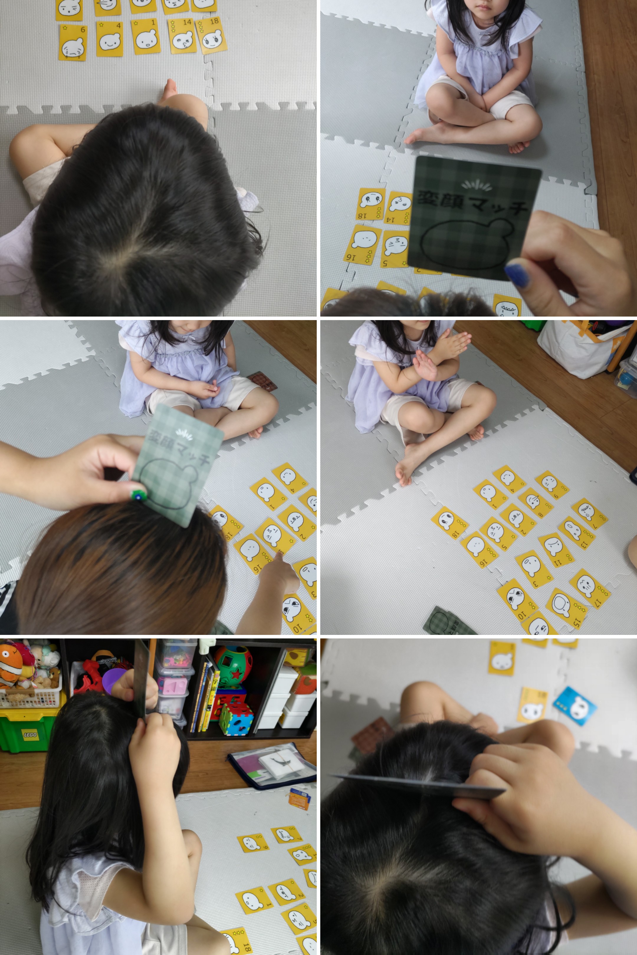 「表情よぉ〜く見て。カードに同じ顔あるかな??」