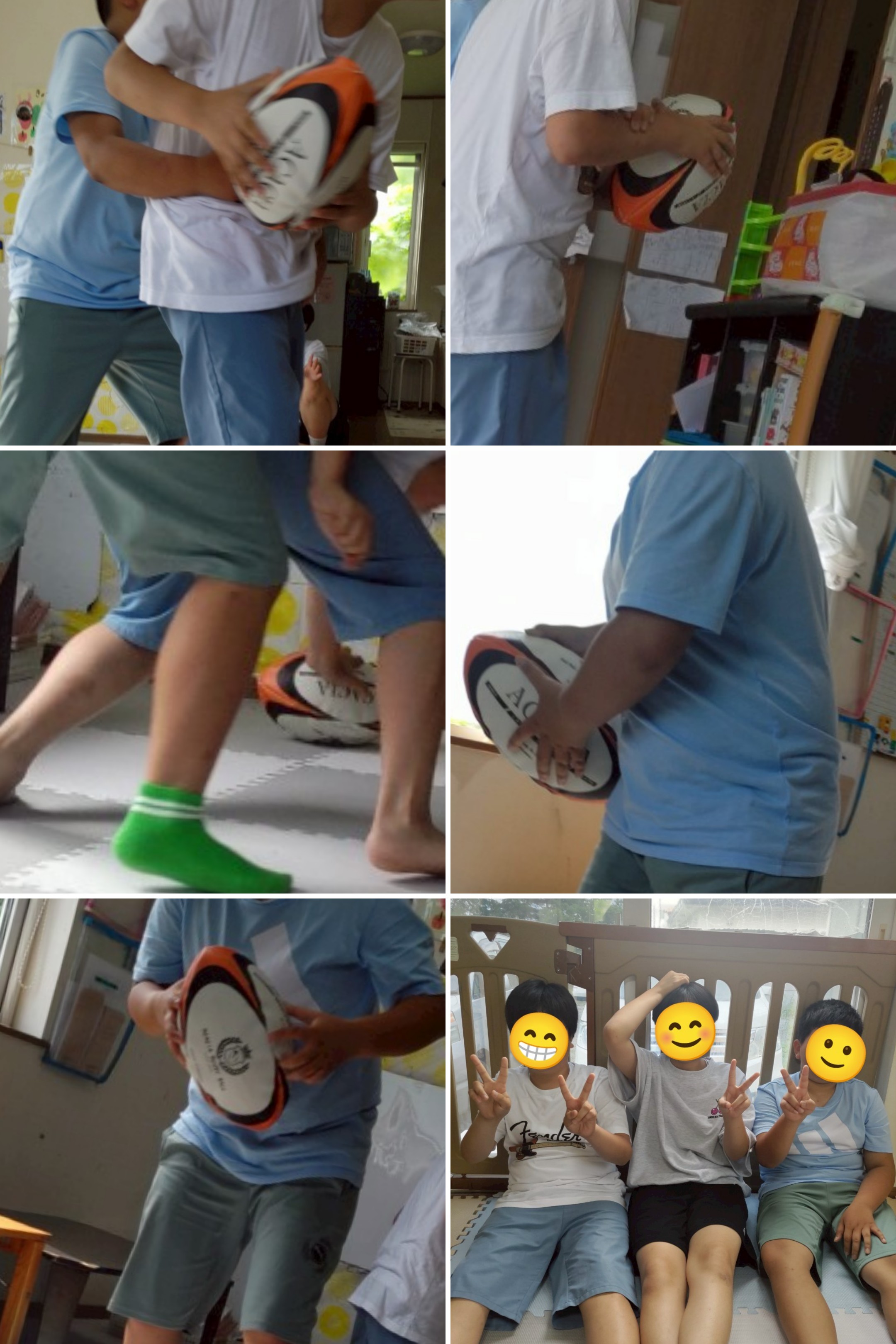 昨年札幌ドームでの日本代表戦のボールボーイを経験した子は目の前でのラグビーの試合の迫力が鮮明に残ってるようで、「うりぁ~!!」とお友達に試合や点数の決め方を説明しながら熱戦しておりました(≧▽≦)