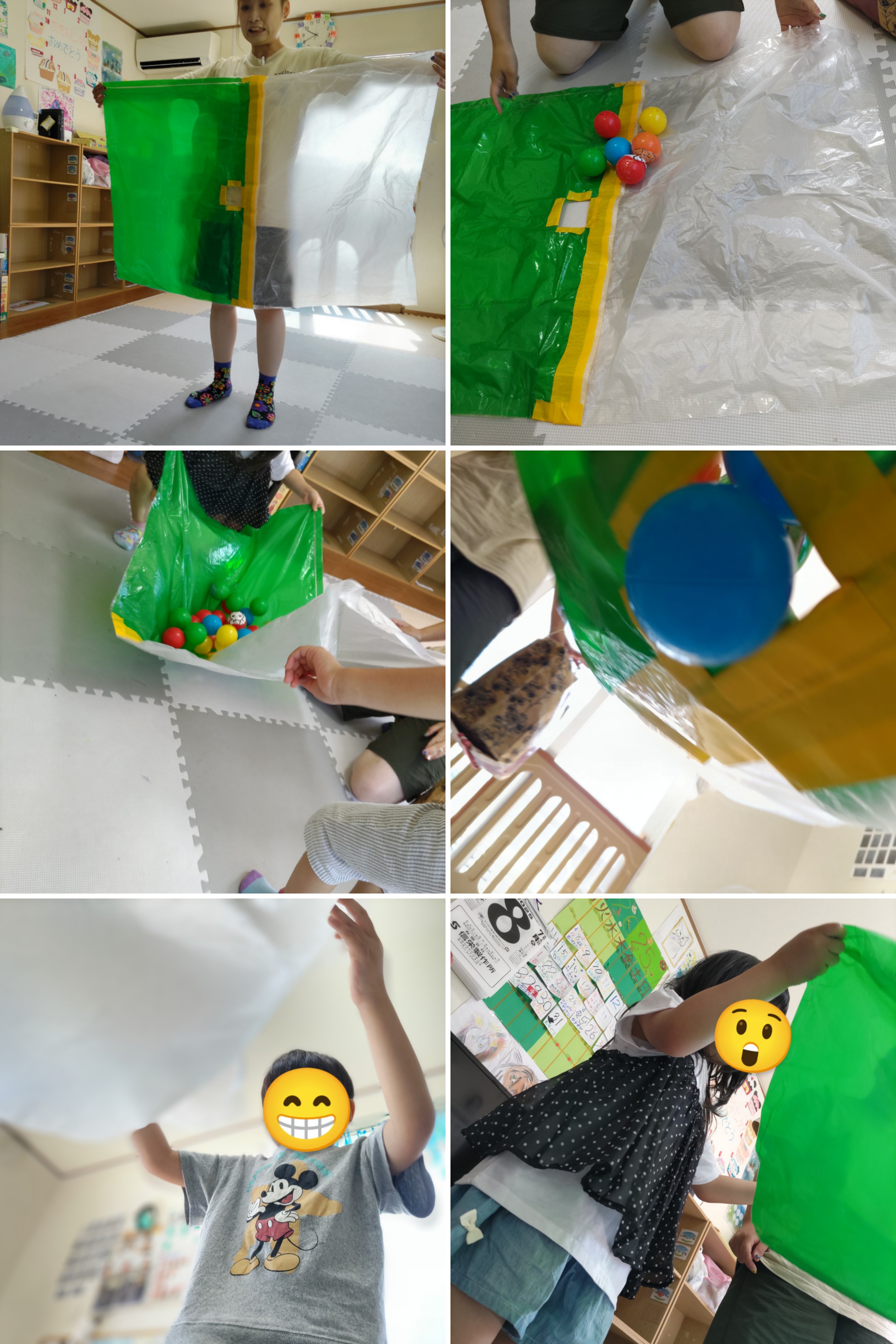 大きなビニール袋の両端を掴み息を合わせて、