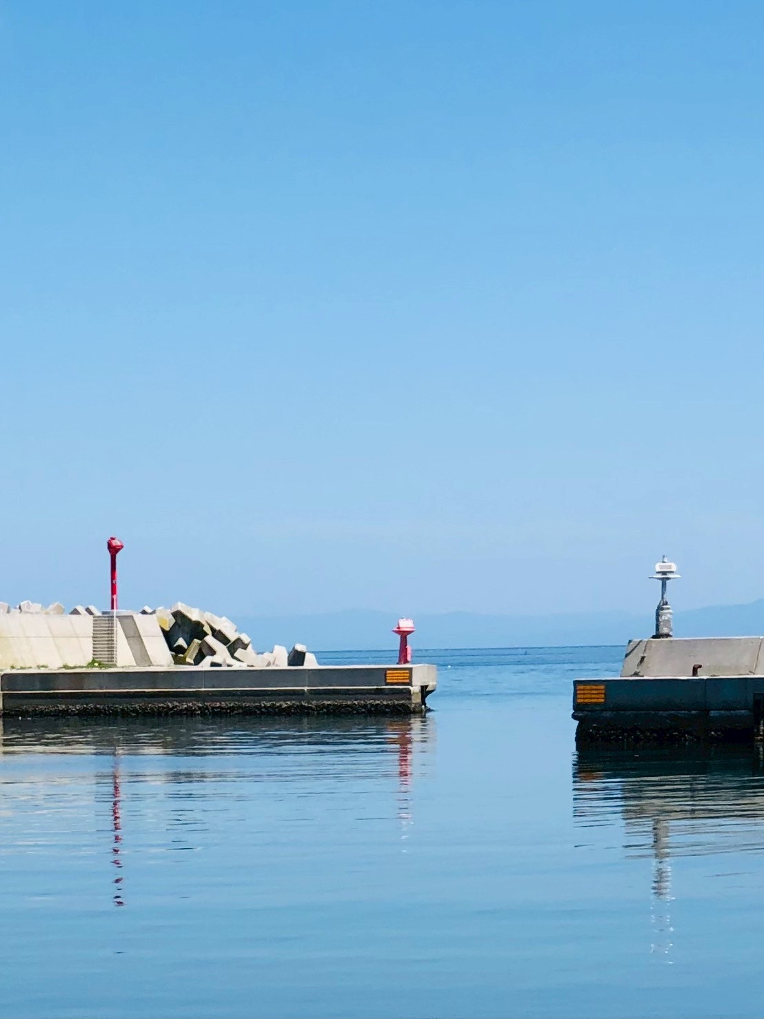 凪で噴火湾にも映し鏡のように映る灯台。