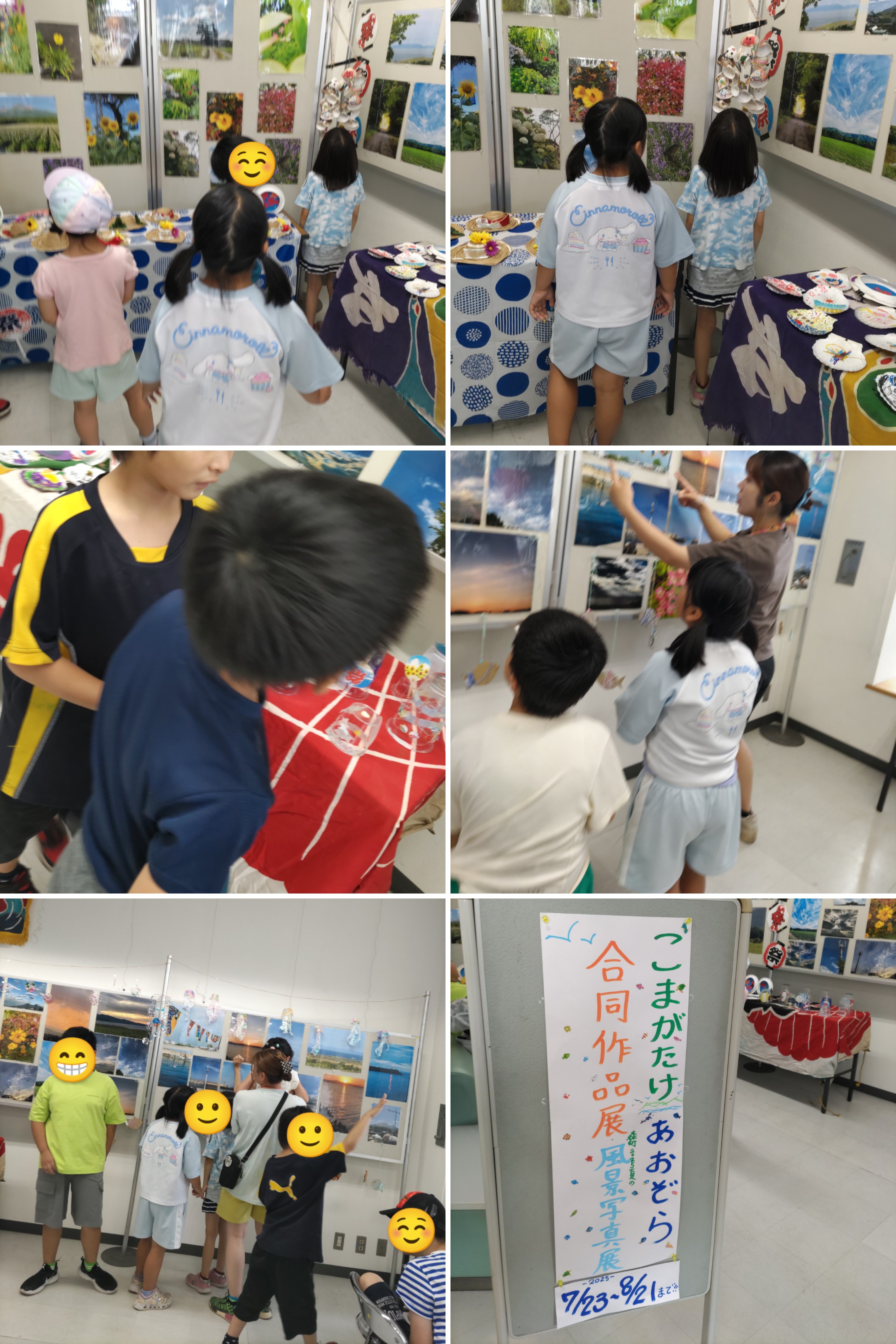 こまがたけ事業所の作品展に見とれる子。