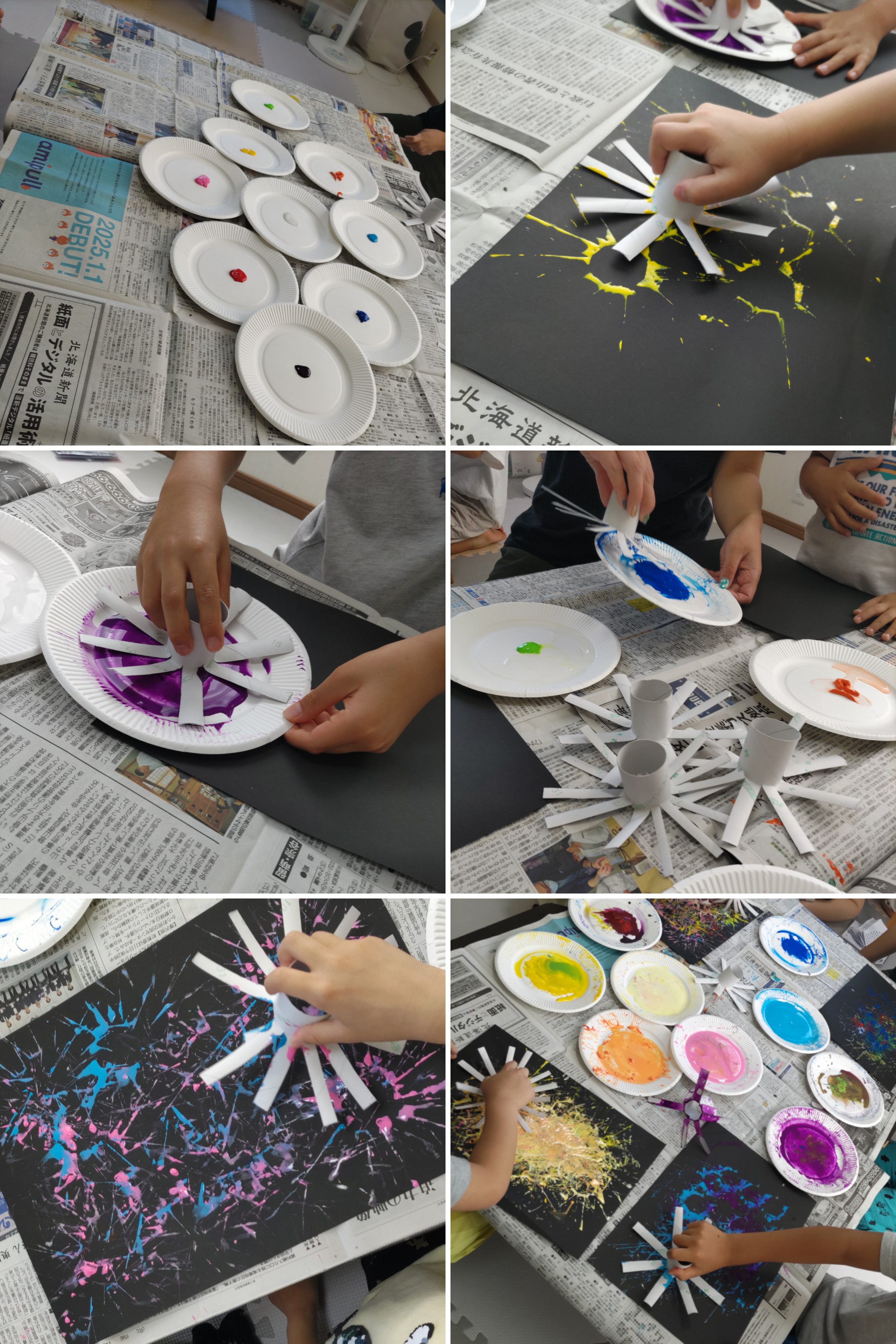 トイレットペーパの芯を再利用し好きな色の絵の具をつけてペタッ!