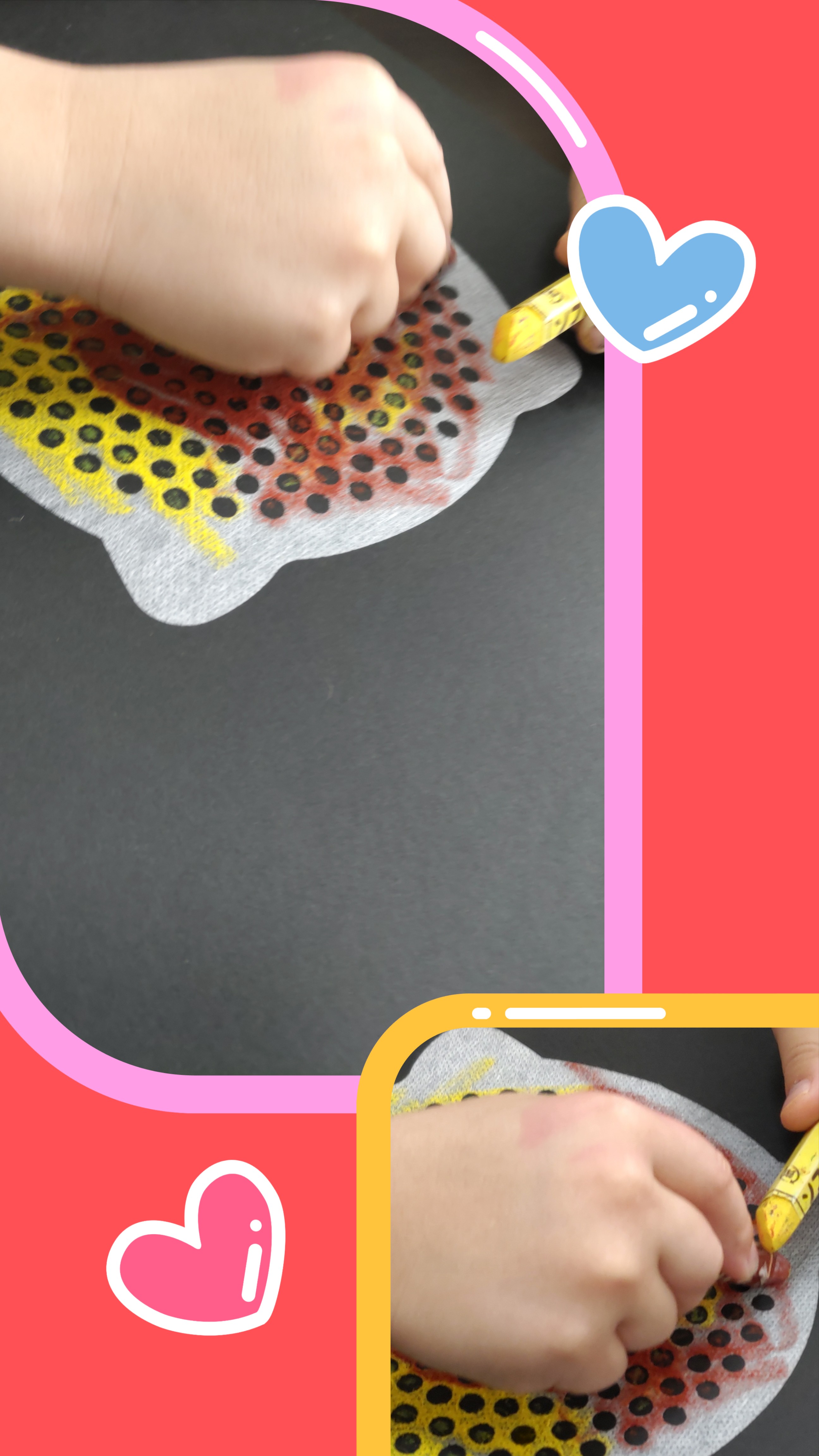 こちらでは、排水口シールを使用し穴の上からクレヨンで塗り!塗り!!