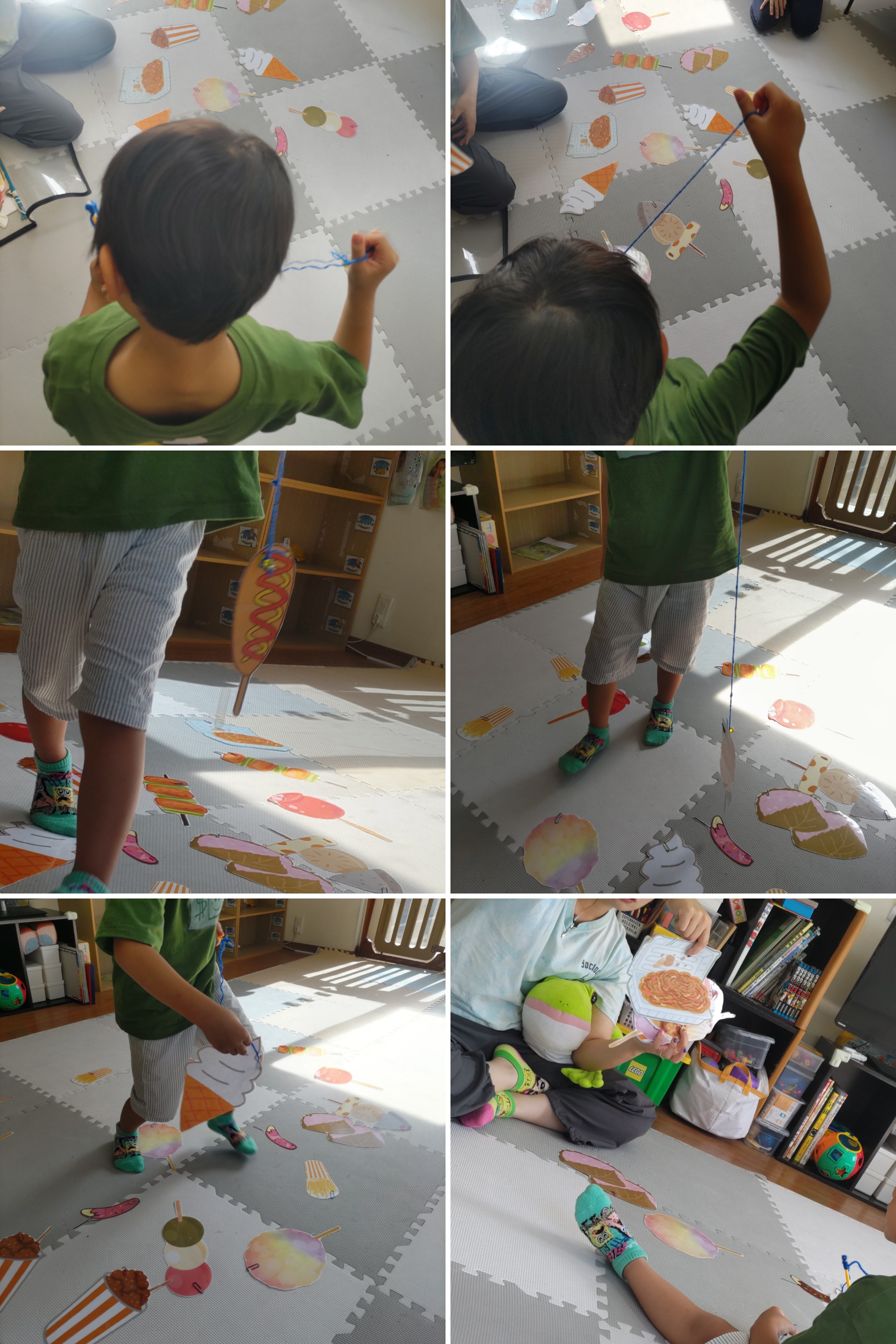 釣り竿の先についてる磁石で自分の好きな食べ物何個釣れるかな?