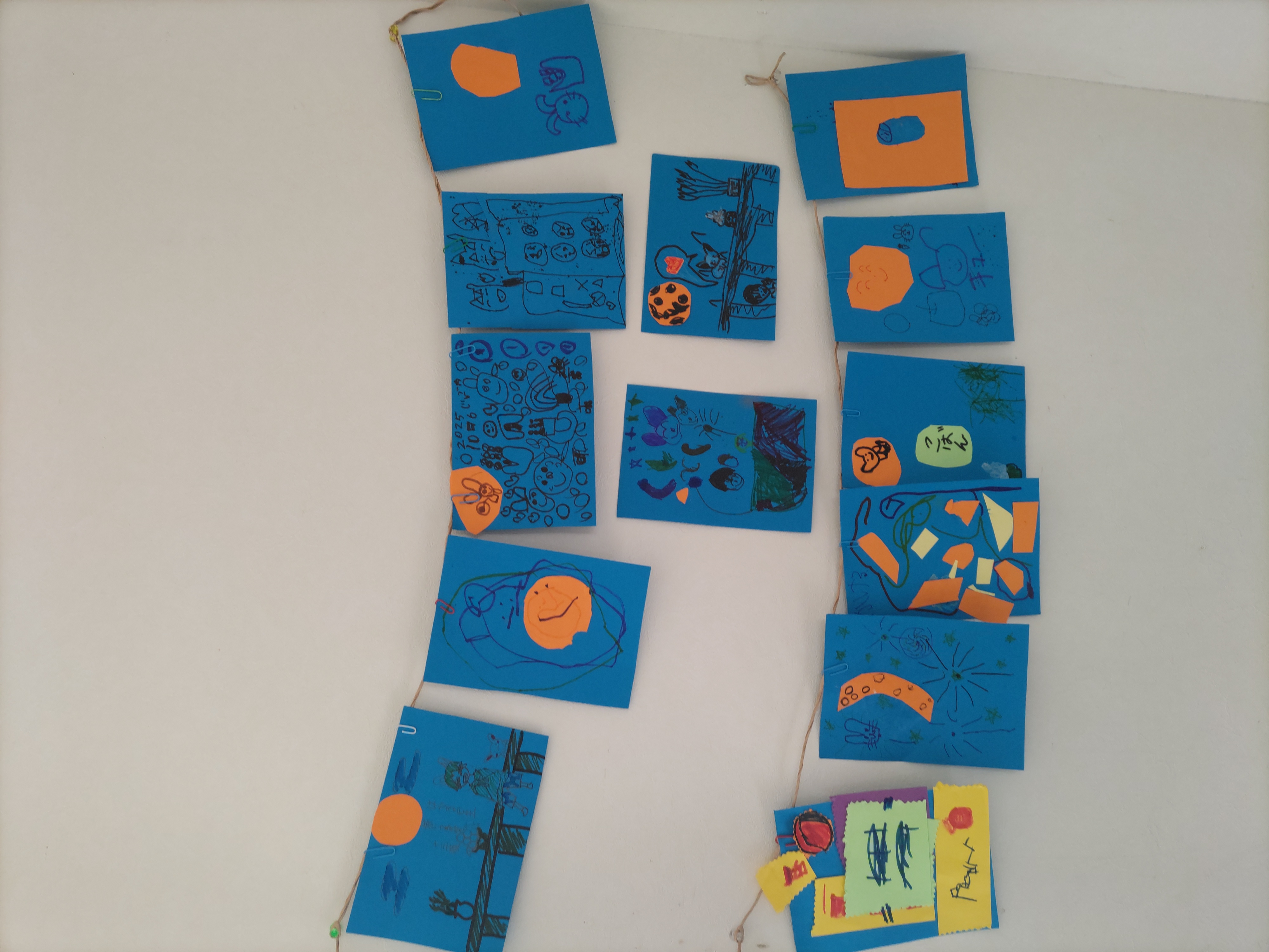 みんなが思うお月見を描き室内に飾りつけしました♡