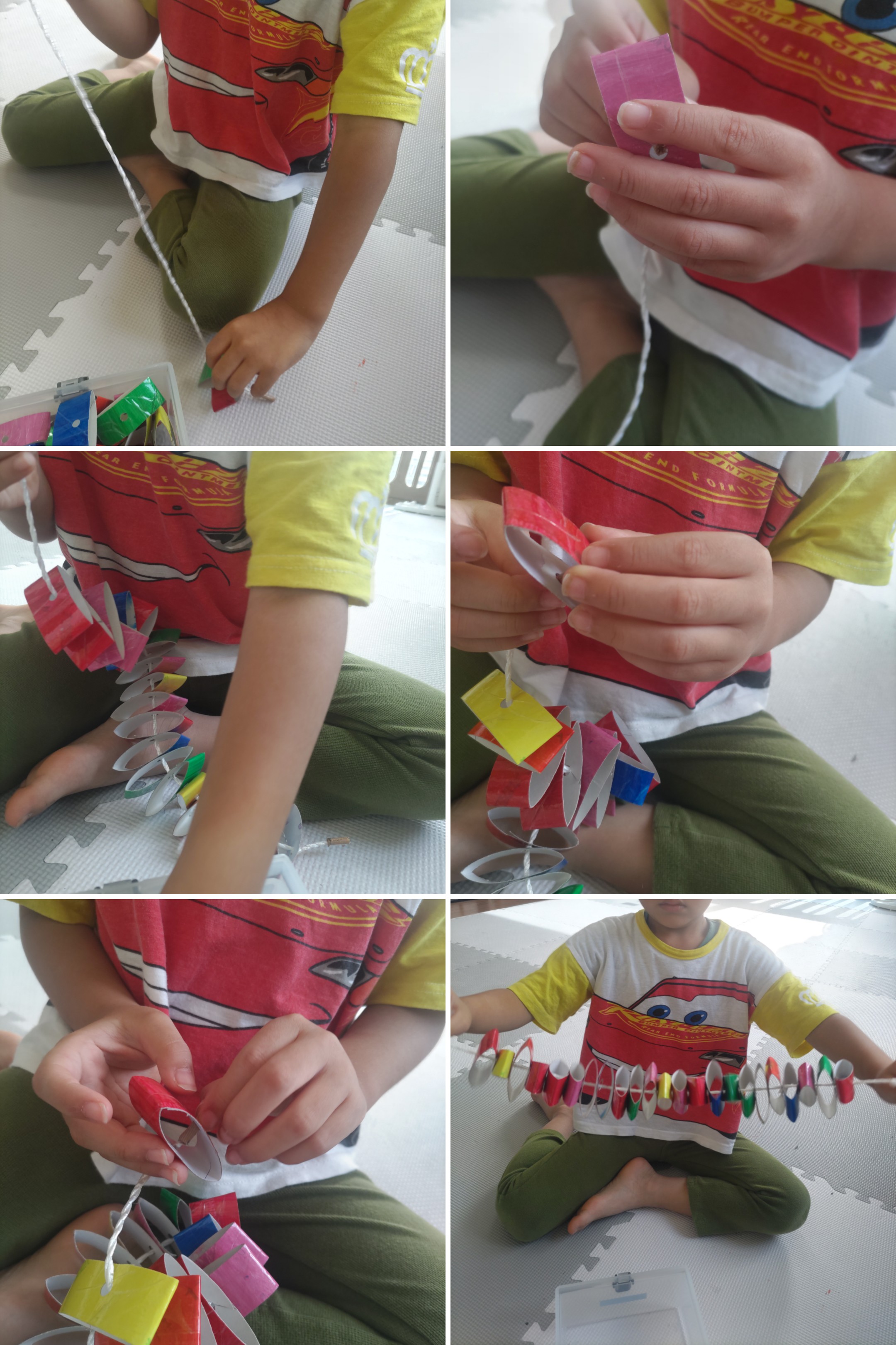 小さな穴に指先に集中力を集め色を発語しながも取り組みました。
